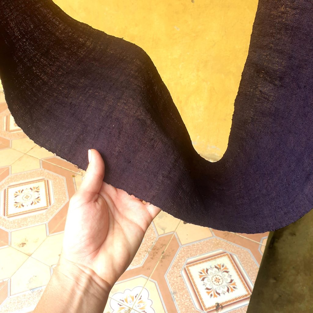 Su me montre les différentes qualités de tissu et m’explique tout en détails. La durée du travail, plusieurs semaines, justifie un prix assez élevé des vêtements fabriqués et vendus ici. C’est super intéressant.