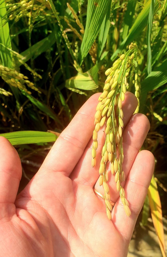 Nous croisons des enfants, des buffles d’eau avec leurs gardiens, des gens qui ramassent le riz mûr, c’est vraiment très beau !