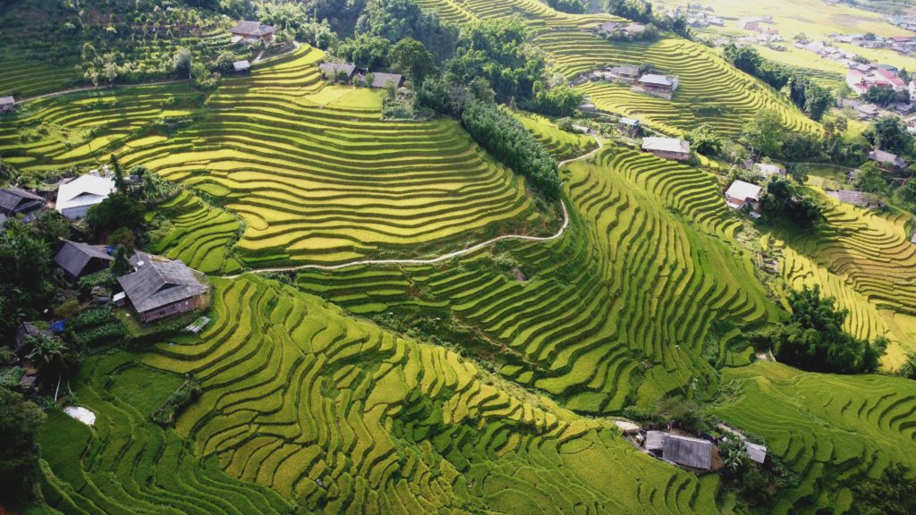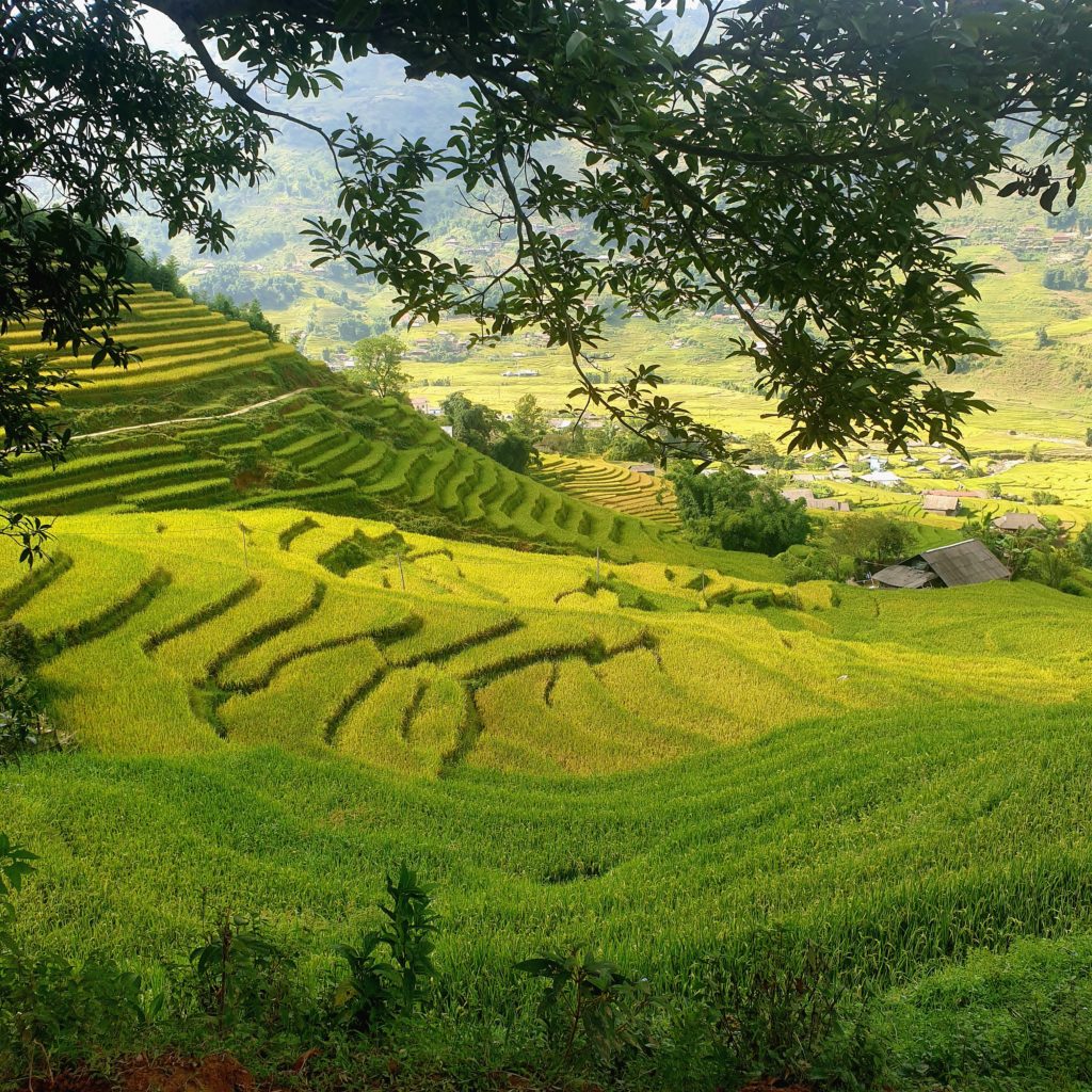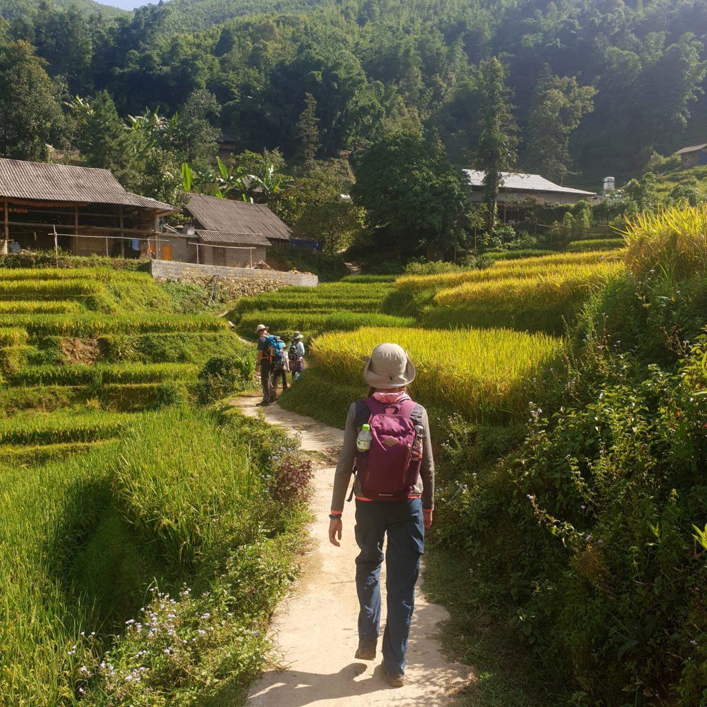 Le soleil est arrivé, nous marchons sur des petits chemins au milieu des rizières en terrasses, c’est magnifique !