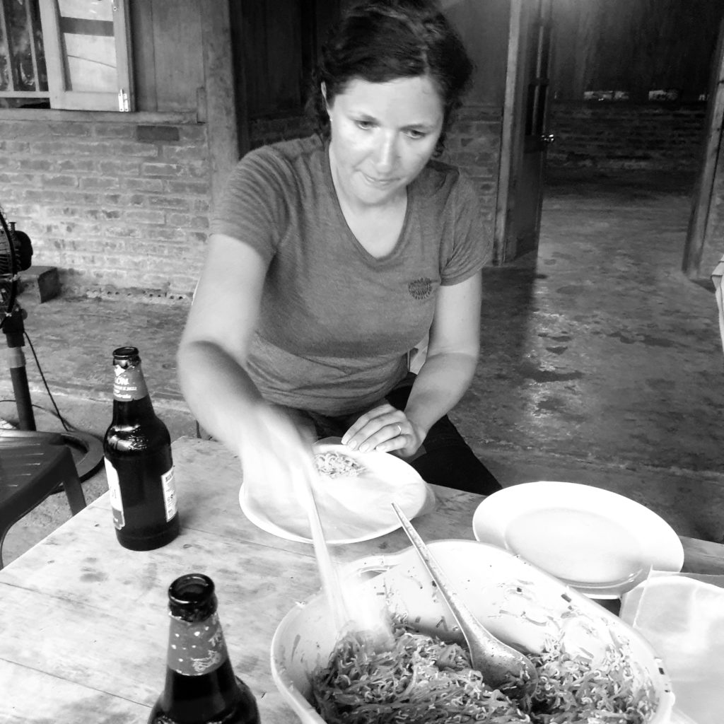 Nous les aidons à préparer le dîner. C’est moi qui m’occupe des nems ! Les 2 parents sont toujours occupés : quand ils ne préparent pas le repas, ils filent le chanvre à tour de rôle.