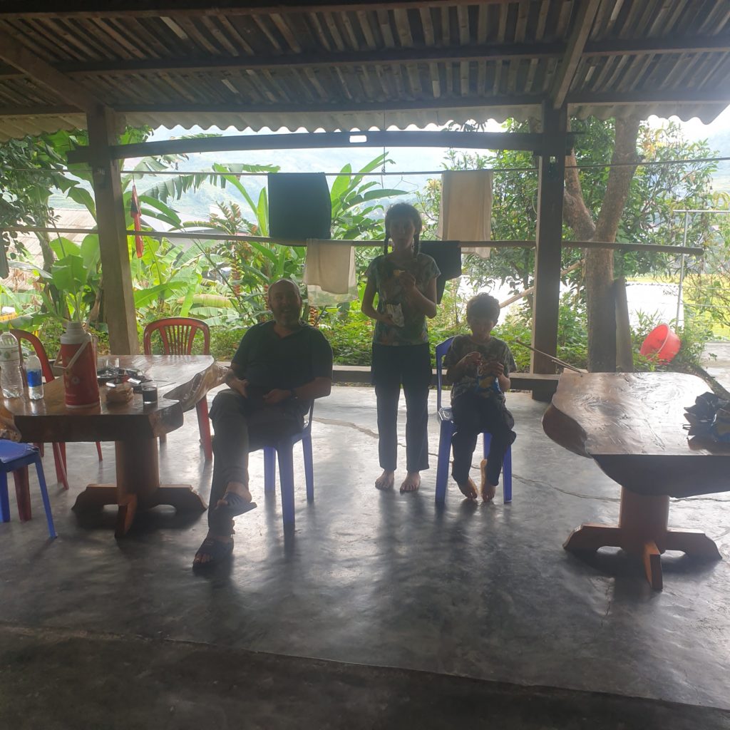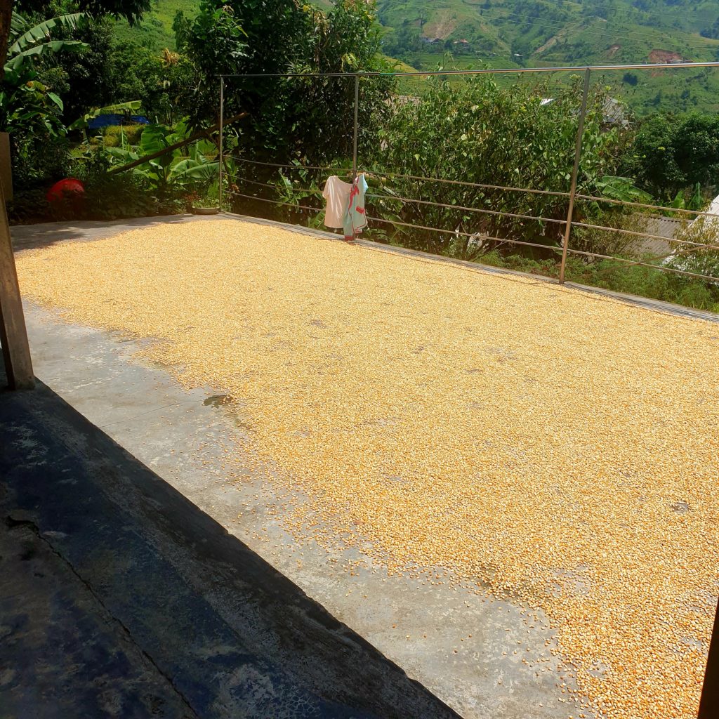 Pendant notre balade de la matinée, ils ont étalé du maïs sur la terrasse pour le faire sécher, mais une pluie éclate pendant le repas. Nos 2 hôtes, la soixantaine, se précipitent pour tout enlever. Nous n’allons pas rester là à les regarder, nous nous précipitons aussi pour les aider. En 5 min, tout est à l’abri, ils n’arrêtent pas de nous remercier !