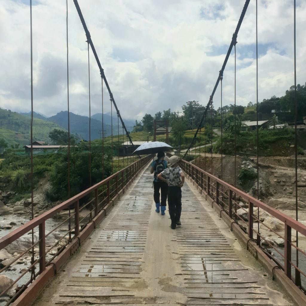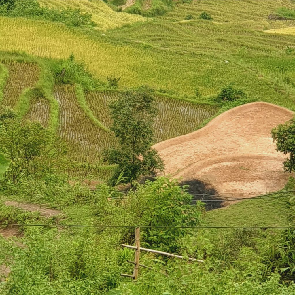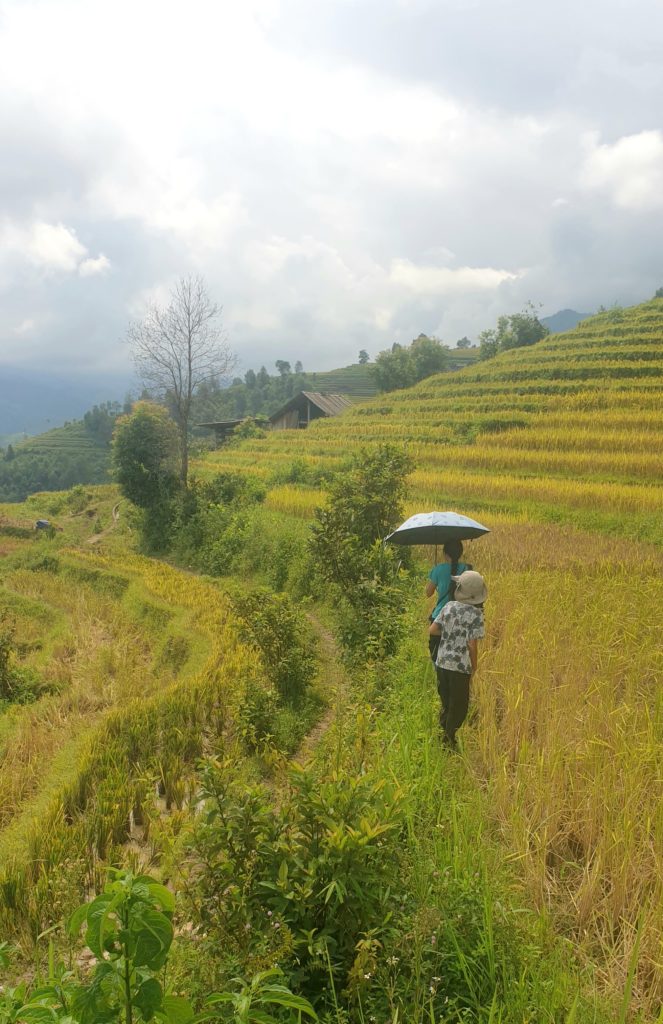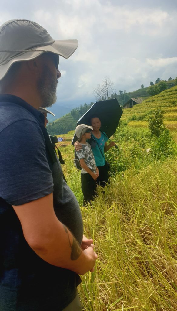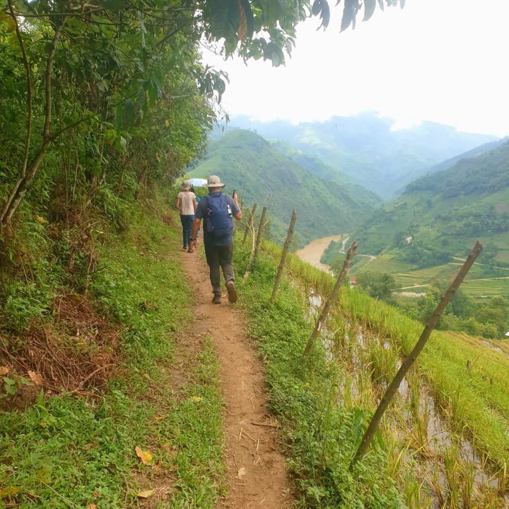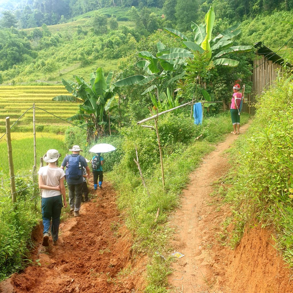 On part tranquillement, sur un chemin pour une fois ! On traverse de nouveaux villages, ceux des Dzao rouges. On s’enfonce de plus en plus dans les montagnes, les paysages changent, c’est vraiment beau !