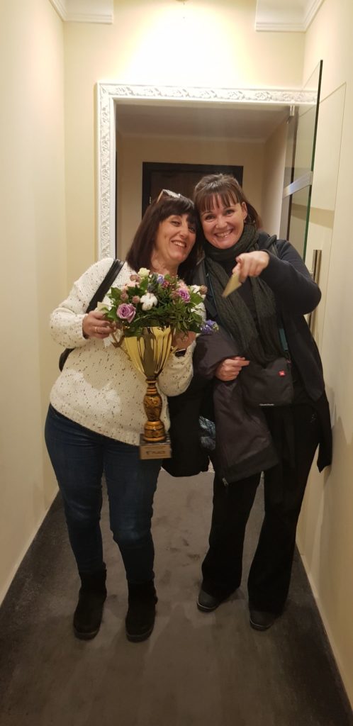 Nous les filles, sommes fatiguées et allons ensuite nous coucher. Les gars décident de prolonger cette super soirée en rejoignant tous les 3 le sauna de l’hôtel (il paraît même qu’un petit verre les accompagnait…)