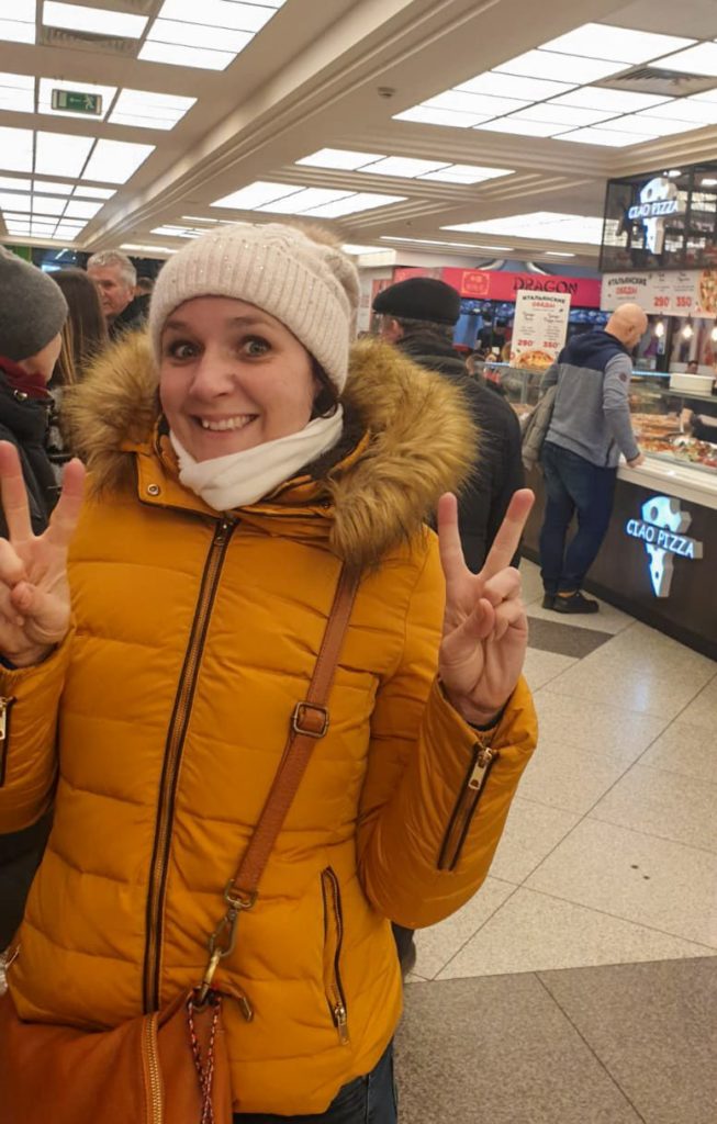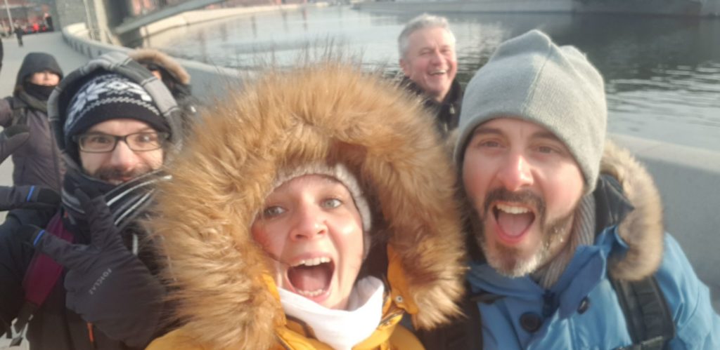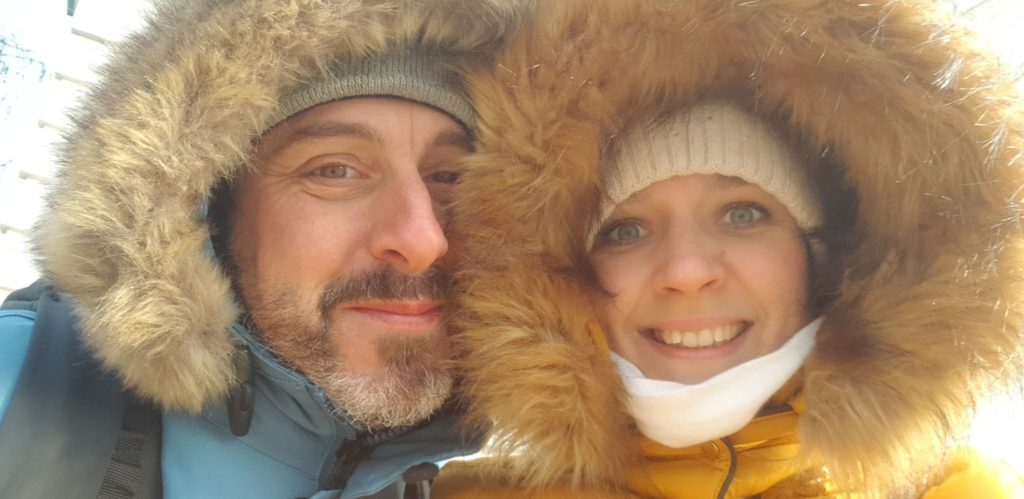 Il fait particulièrement glacial aujourd’hui et nous ne pouvons rester longtemps dehors si nous ne voulons pas sentir nos doigts et nos orteils se geler ! Nous nous réfugions aux toilettes pour réchauffer nos doigts aux sèche-mains… Dès qu’il faut prendre une photo, je suis obligée d’enlever une partie de mes gants et je sens très vite la morsure du froid sur mes mains !