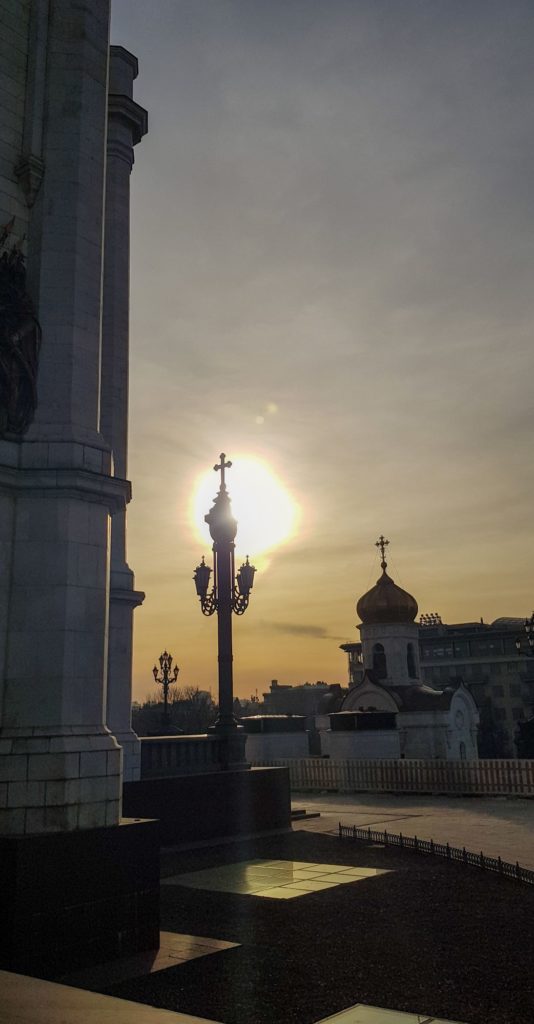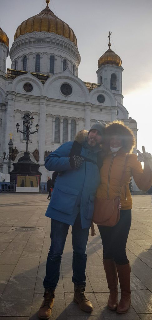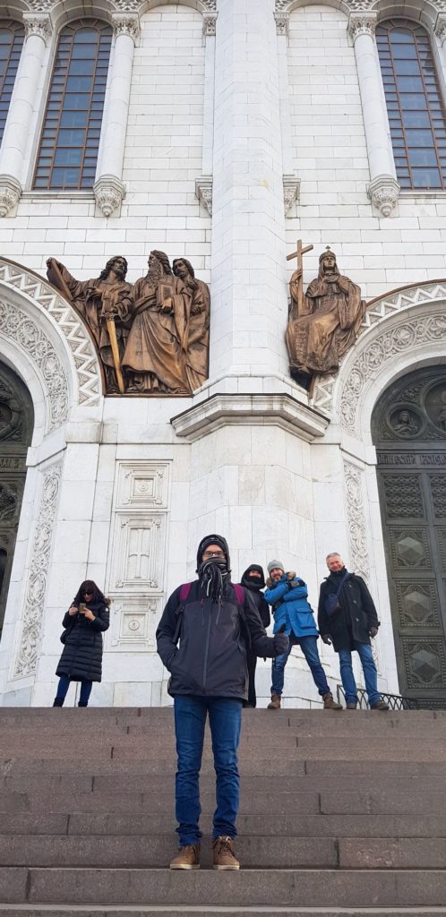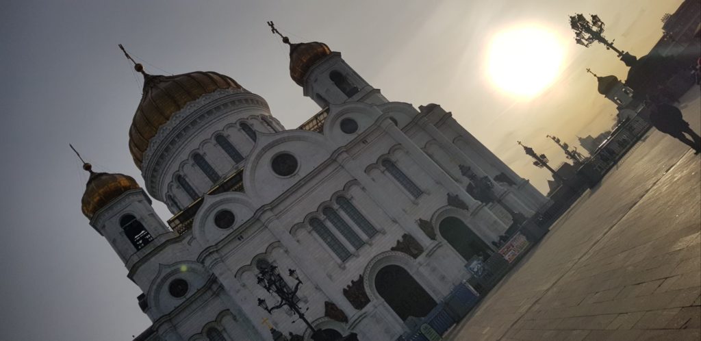 Après un copieux petit déjeuner où les Steph nous rejoignent (ils ont réservé la dernière nuit dans le même hôtel que nous pour passer les journées du dimanche et du lundi ensemble), nous partons à pied à la Cathédrale du Christ St Sauveur, une magnifique église posée au bord de la Moskva.