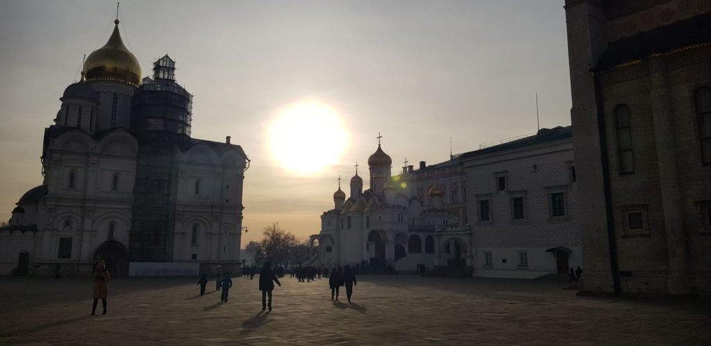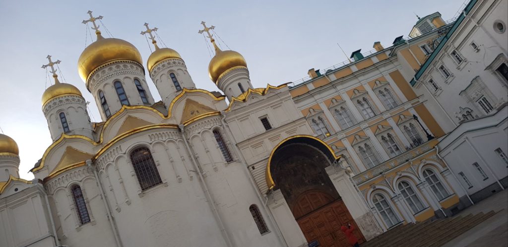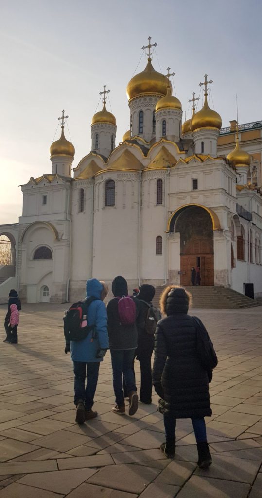 En sortant de la cathédrale, nous partons en direction du Kremlin. Une fois les billets en poche, nous découvrons enfin l’intérieur de cet immense domaine, caché derrière l’enceinte de brique rouge. Au cœur de ce lieu historique de pouvoir : des palais, des jardins, des musées, des églises et 3 cathédrales !!