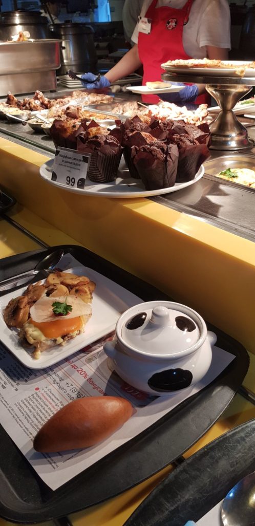 Nous quittons ensuite le Kremlin, traversons la Place Rouge et allons manger non loin de là dans un self populaire : My My où nous nous posons un moment pour reprendre des forces.