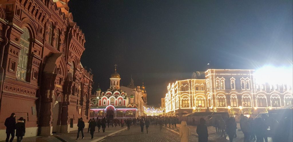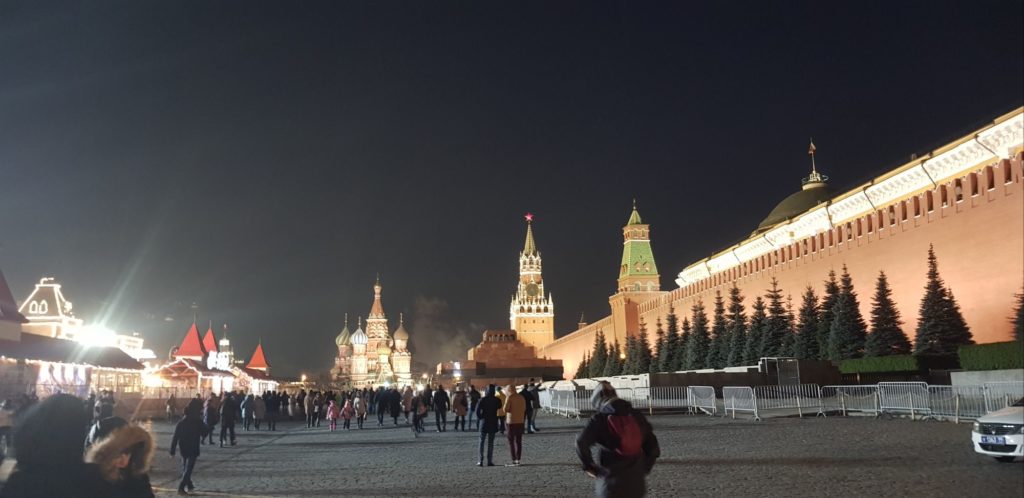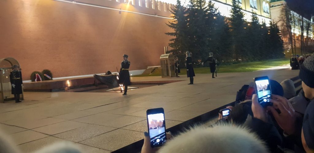En sortant de là, il fait nuit. Devant la tombe du soldat inconnu, près de l’enceinte du Kremlin, nous apercevons un attroupement. Nous sommes curieux et nous nous approchons pour découvrir avec joie que nous arrivons pile au moment de la relève de la garde ! Le spectacle de ces soldats marchant au pas et effectuant leur rituel est unique !