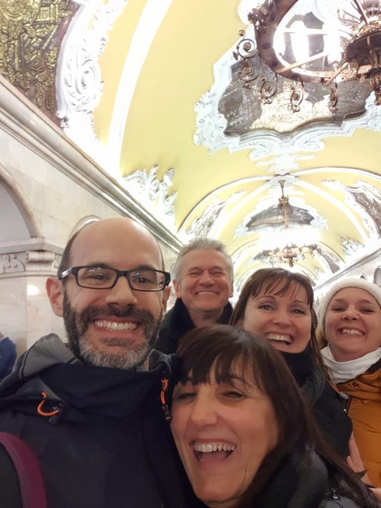 Nous descendons très bas et prenons la ligne 5 qui fait une boucle autour du centre. A chaque station, nous descendons et admirons la splendeur des lieux du plus beau métro du monde !! Les ohhhhhhh et les ahhhhhhhhh se succèdent !