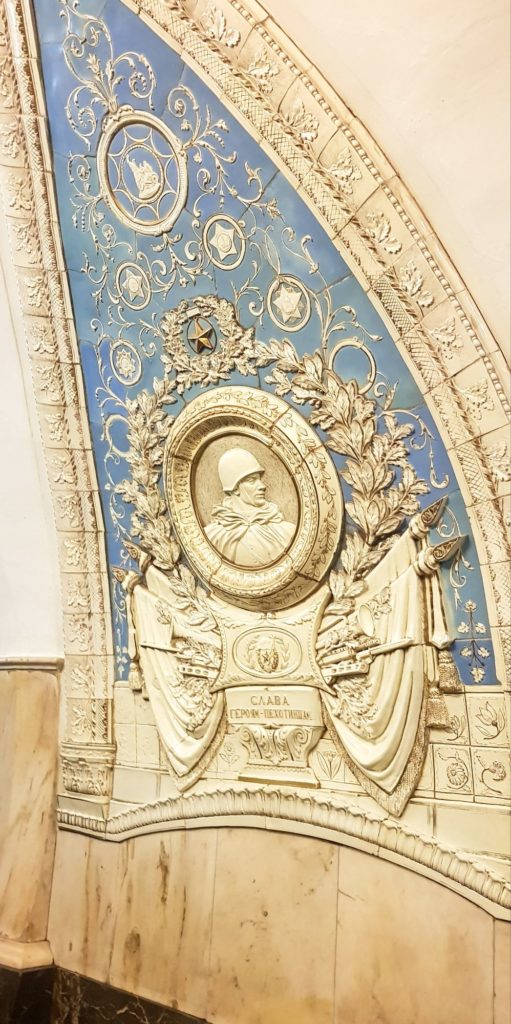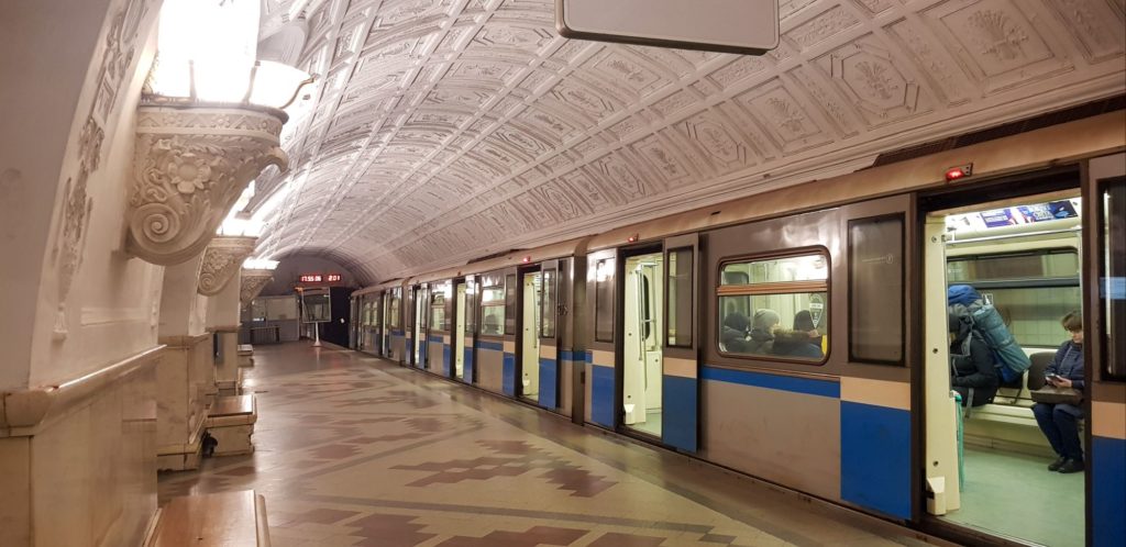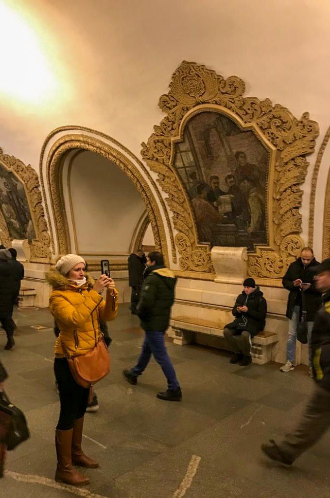 Chaque station est plus belle que la précédente. Nous avons 40 sec exactement (c’est le temps qu’il y a entre 2 passages de trains) pour découvrir les décors somptueux des plafonds, les dorures, les sculptures, les tableaux et même les vitraux ! On ne se croirait pas du tout dans des stations de métro, c’est très perturbant de voir des rames défiler au milieu de ce décor hors du commun…