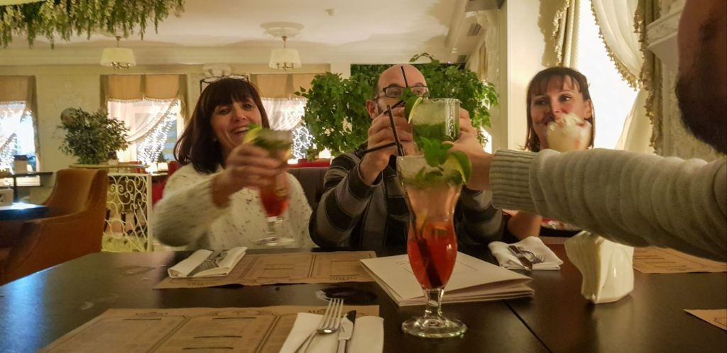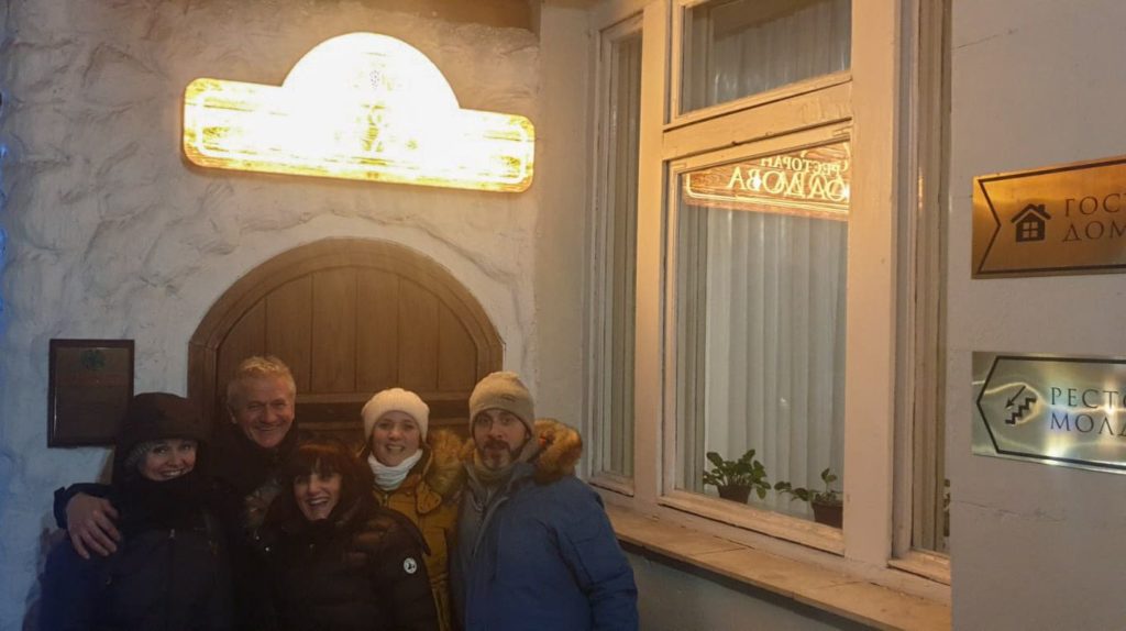 Nous sommes heureux d’être tous ensemble ici, en Russie et en Moldavie à la fois, de partager cet instant ! Nous mangeons très bien, nous buvons et rigolons beaucoup, tout semble irréel…le bonheur c’est ça !