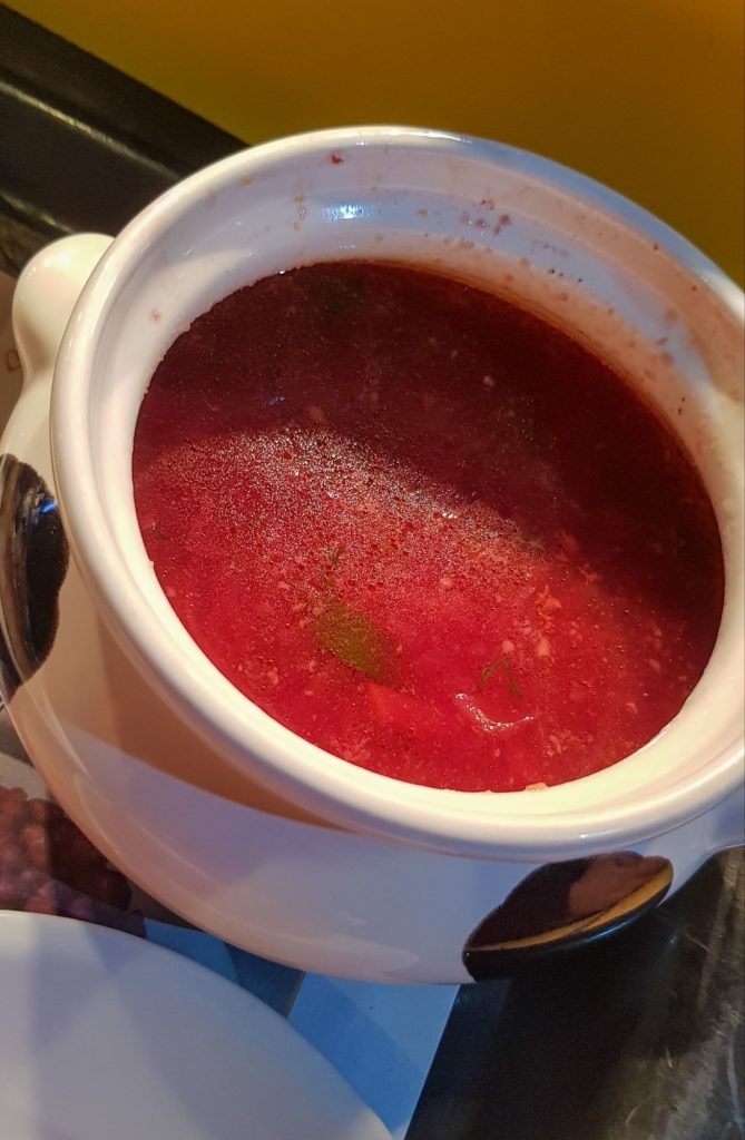 Pour accéder au restaurant, rebelote, nous repassons par tout un tas de cours, d’escaliers et devant un vigile pour finalement nous rendre compte que nous sommes entrés…dans l’ambassade de Moldavie !!!