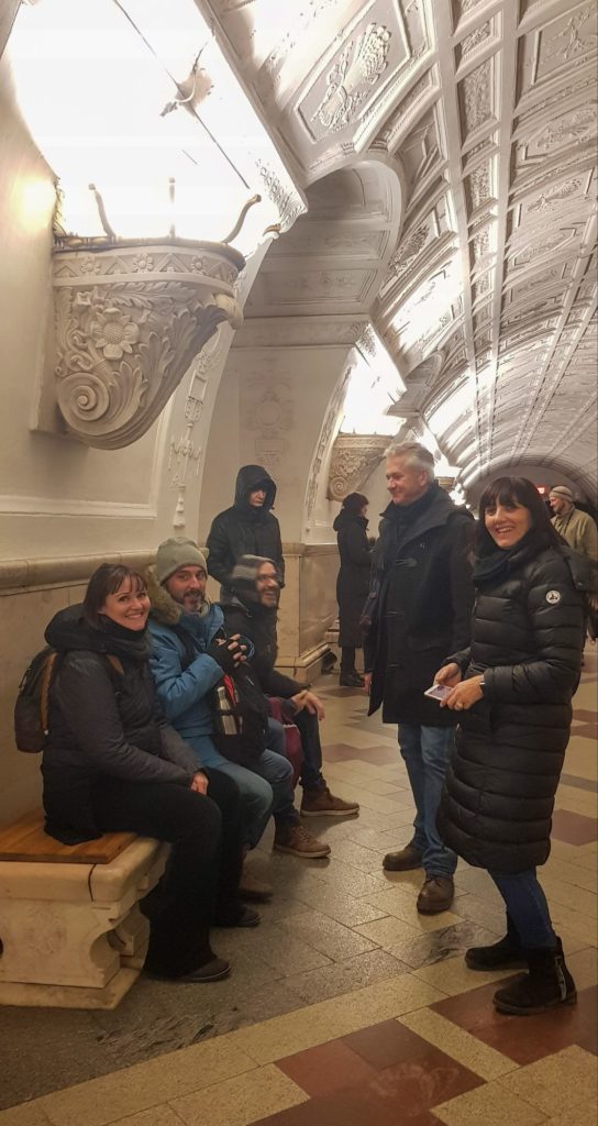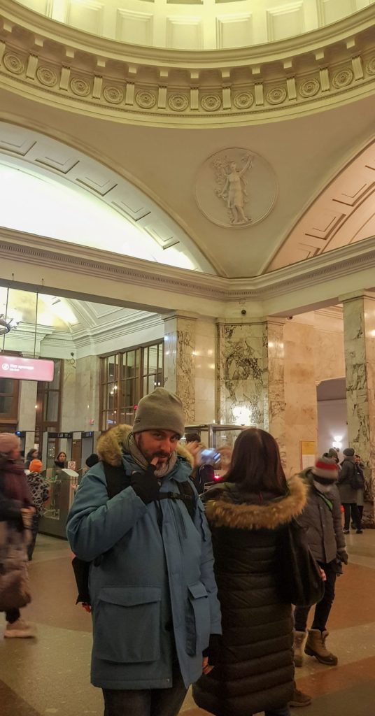 Nous avons à nouveau très froid, nous décidons d’aller visiter…le métro et ses splendeurs paraît-il ! Nous achetons un ticket aller simple et nous nous engouffrons dans les entrailles de la terre.