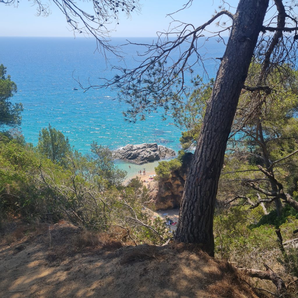 Nous avons repéré sur internet une jolie crique non loin de Lloret del Mar. Il faut suivre un joli sentier pour descendre jusqu’à la mer. Le chemin sent bon les pins, il fait chaud, il y a des cigales, la mer en contrebas est translucide, c’est le pied !! Les enfants sont ravis, les grands aussi !