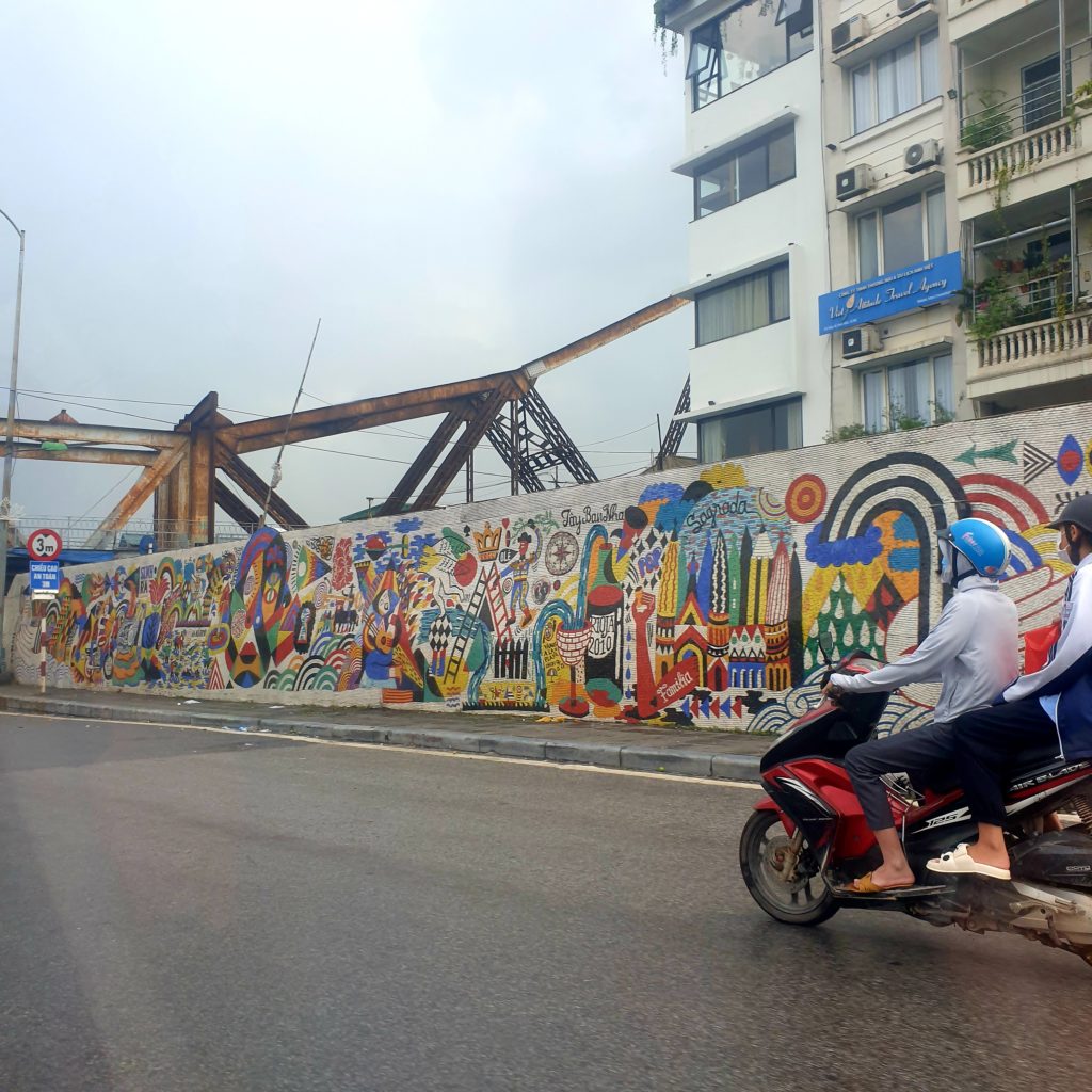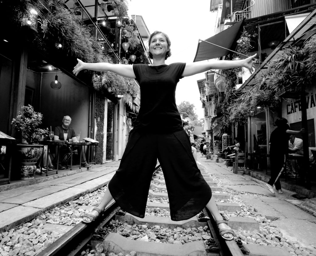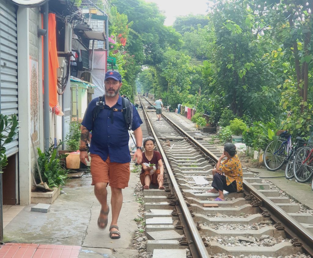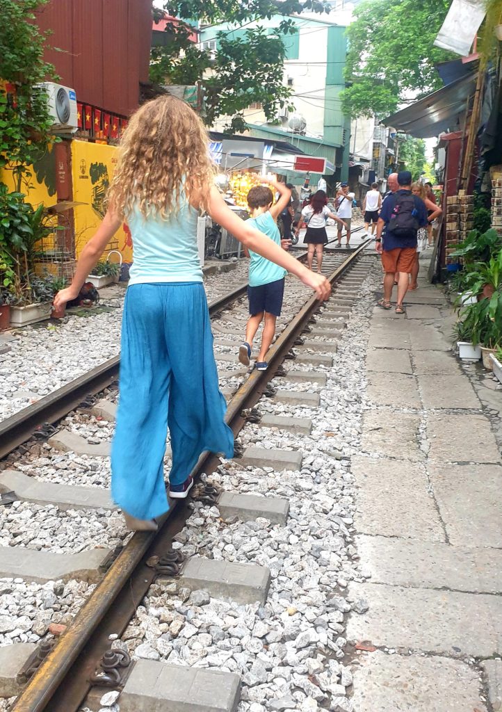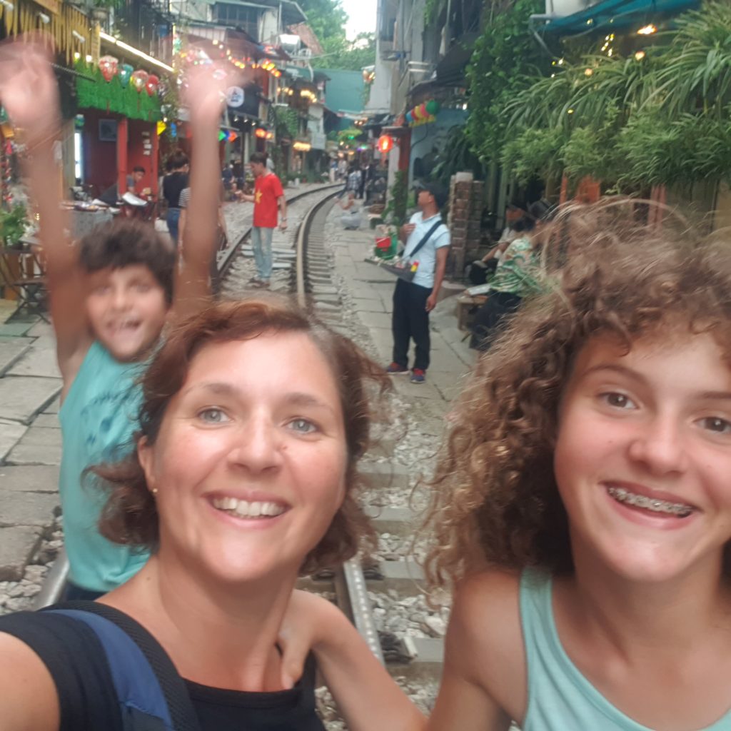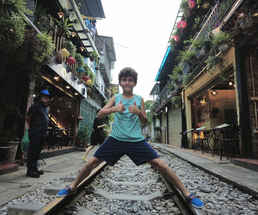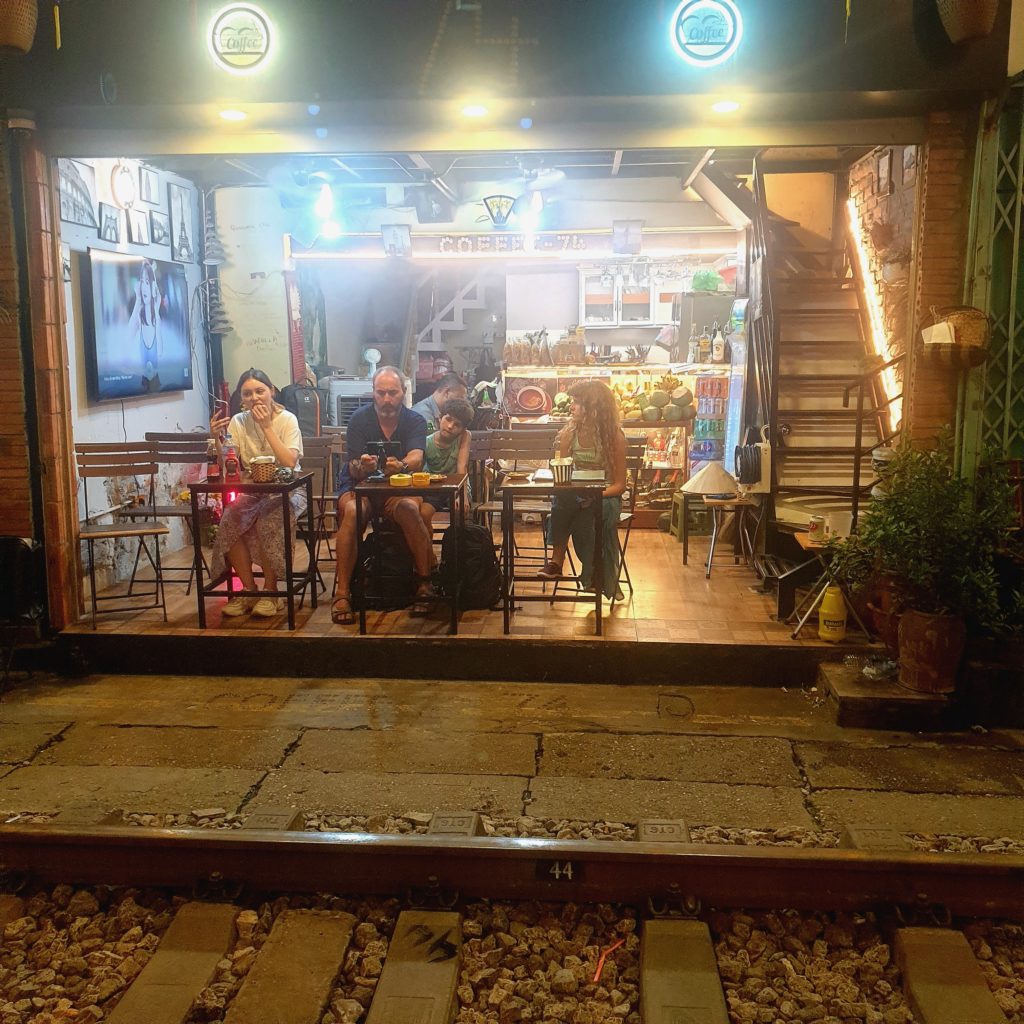 Nous nous baladons une bonne partie de la journée, nous mangeons des Bo Bun de la mort qui tue, achetons une énième valise pour ramener nos souvenirs, et nous nous arrêtons sur une célèbre voie ferroviaire (Train street) qui date de l’époque coloniale française et qui traverse la capitale. C’est fou, la rue est super étroite : il y a entre 4 et 5 mètres seulement entre les deux rangées d’habitation, juste de quoi laisser passer la locomotive et les wagons ! Il parait que lorsque les trains passent, ceux-ci frôlent carrément les maisons. On a attendu d’en voir passer un, mais beaucoup ont été annulés, on reviendra demain !