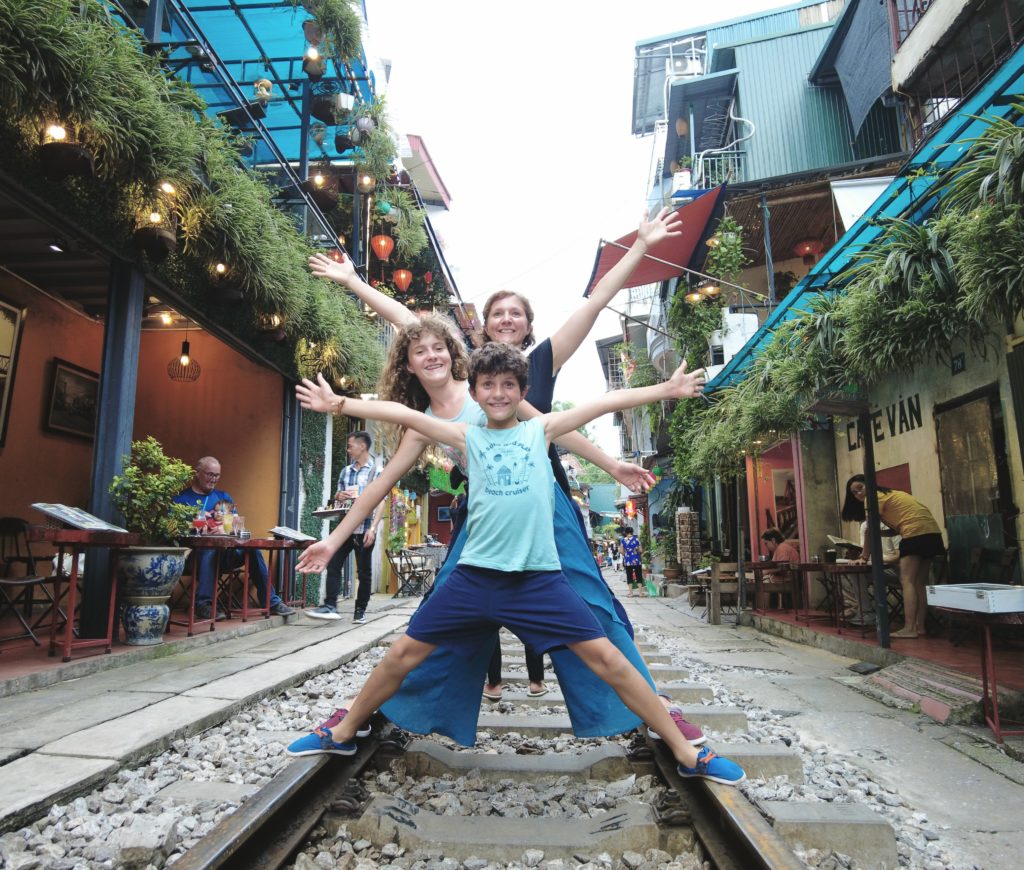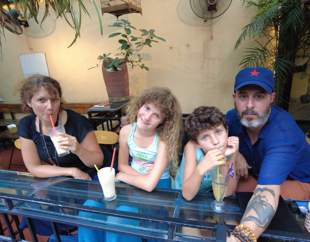 Dans la maison juste en face de nous, en hauteur aussi, une famille autrichienne que nous avions croisée sur le ferry pour Cat Ba ! Nous avons discuté de terrasses interposées 😅