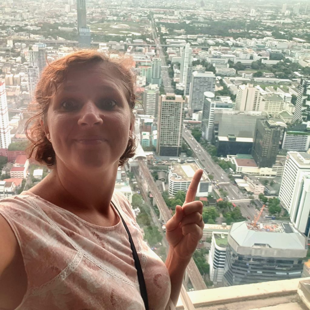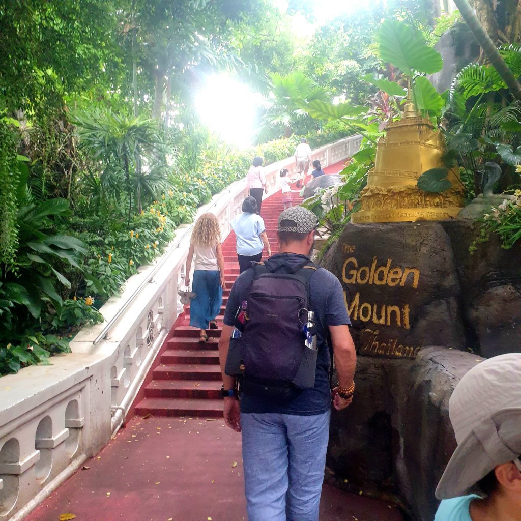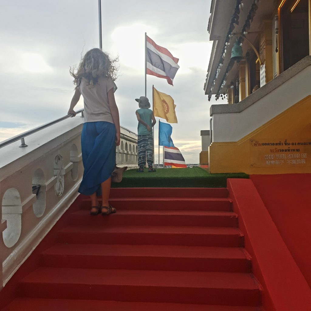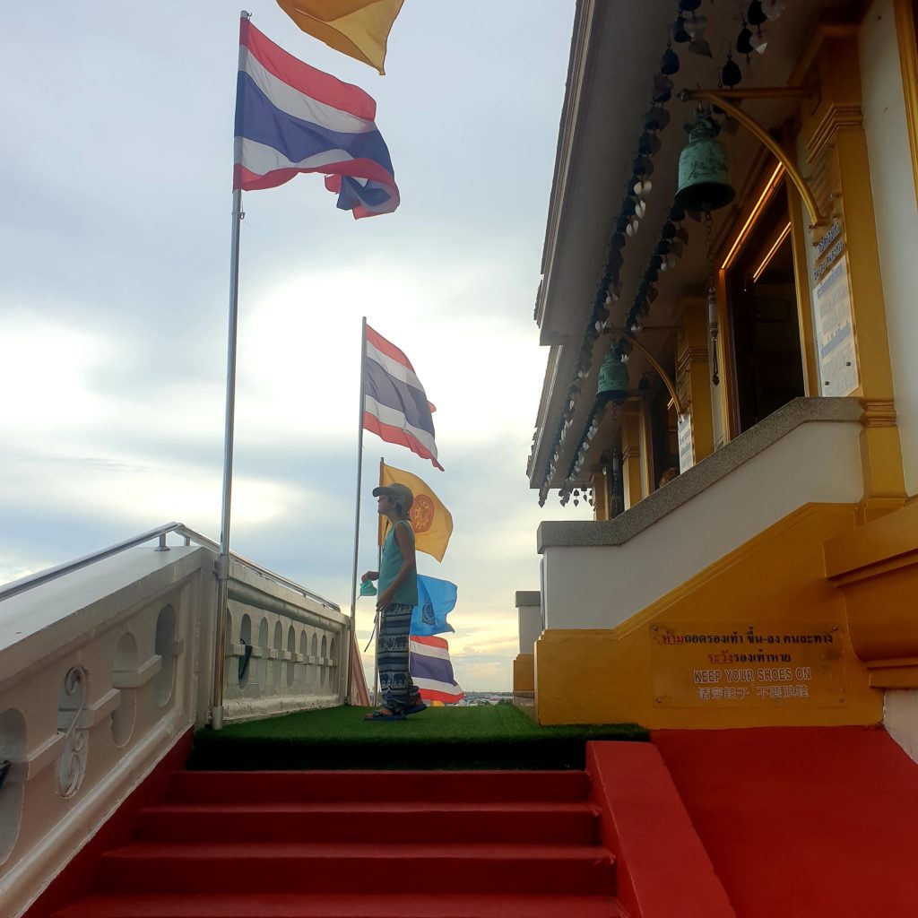 On est juste à côté du Wat Saket, le temple de la montagne d’or. Allez, on enchaîne ! De là-haut, on a une vue incroyable.