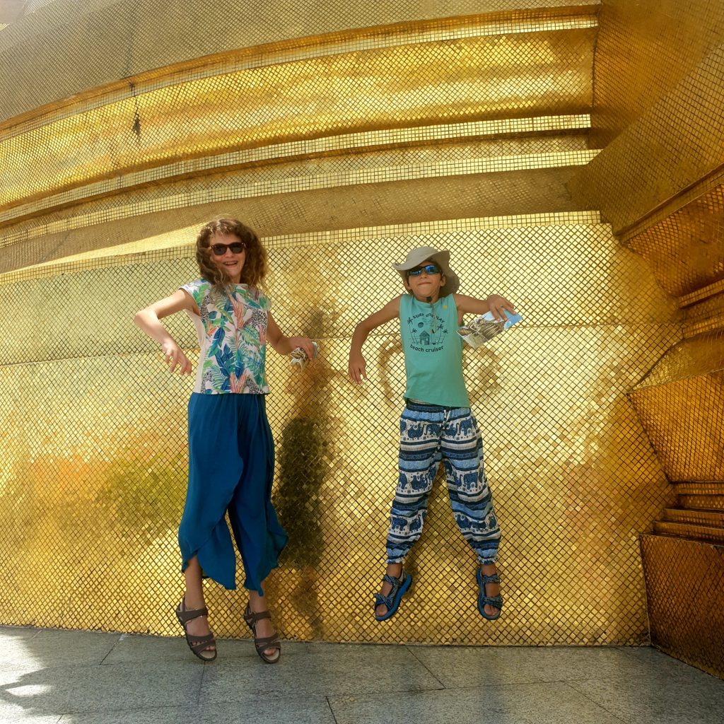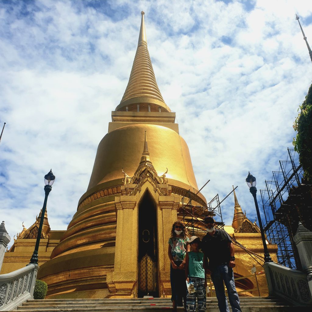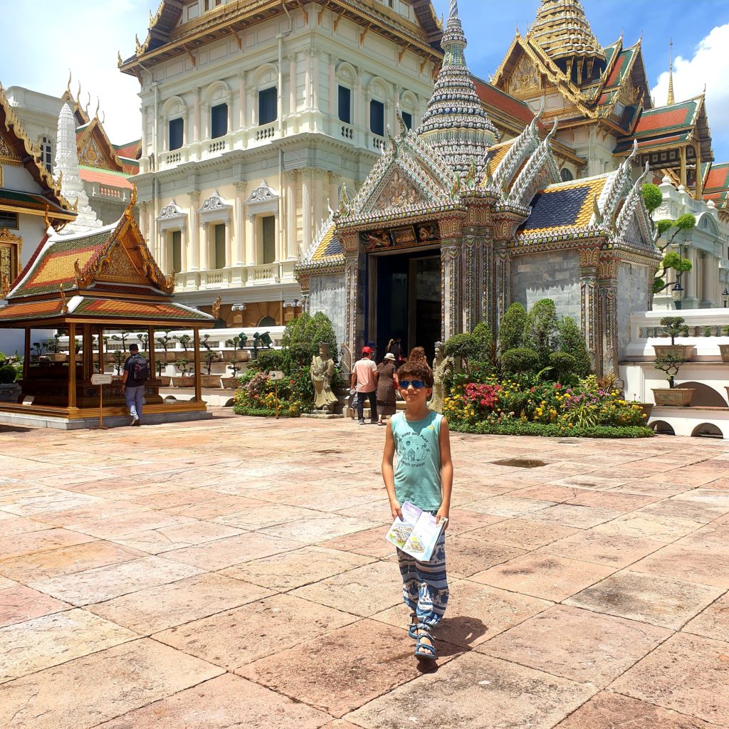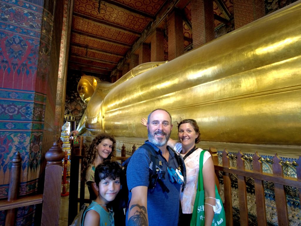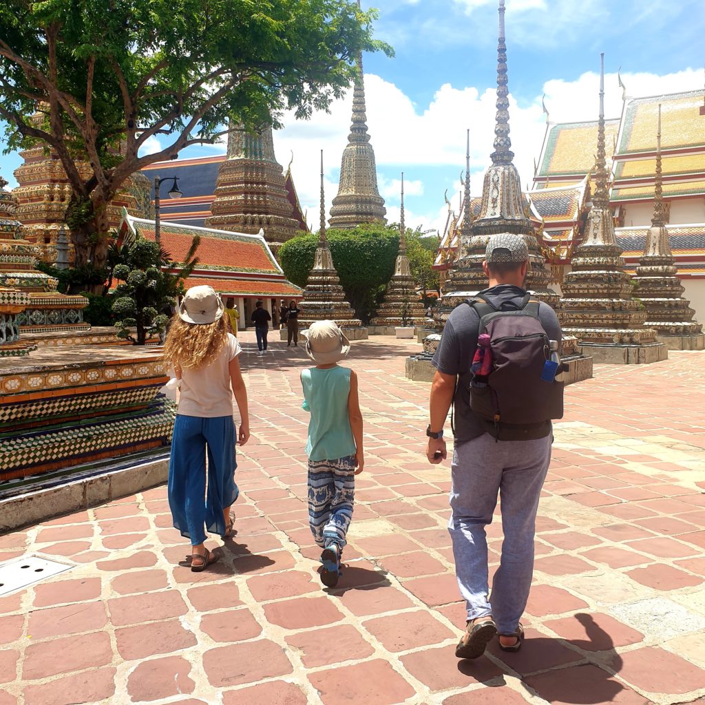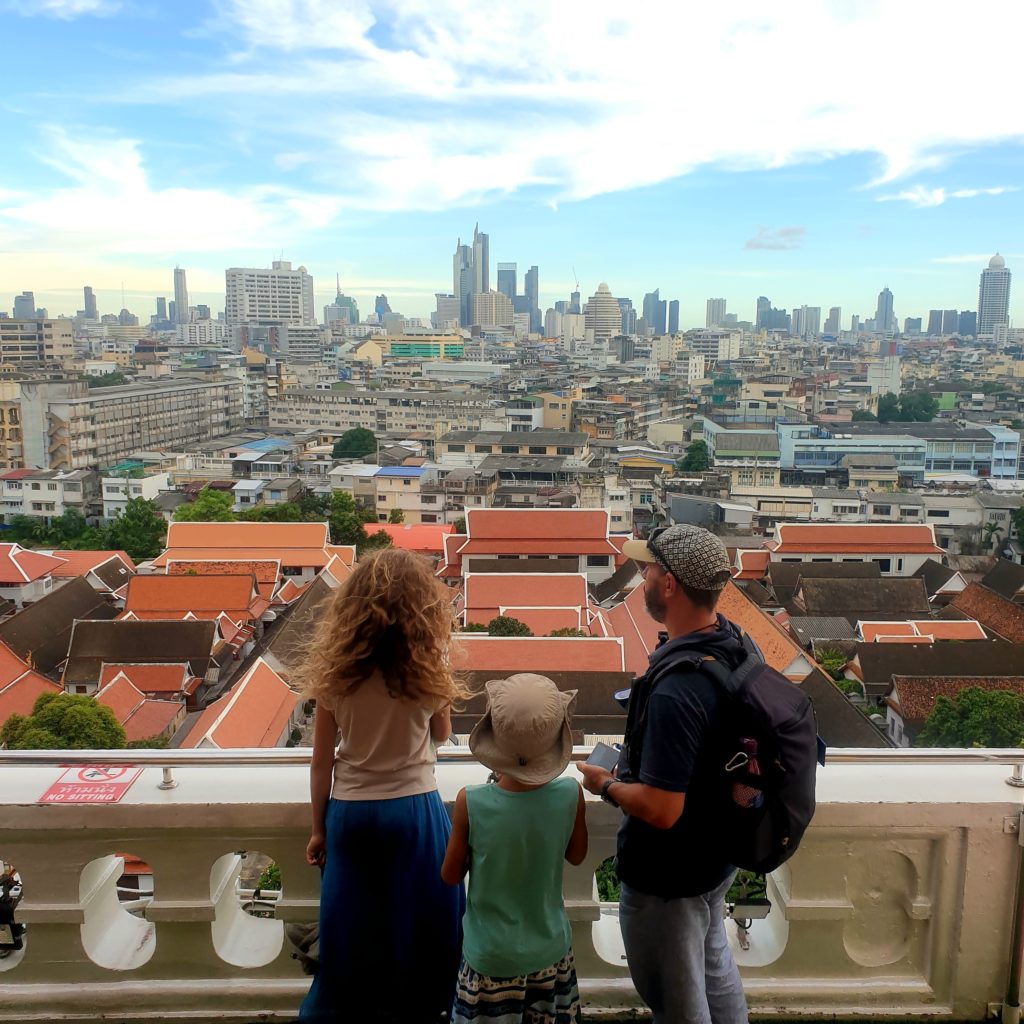 Bangkok…c’est ici que tout a commencé il y a 14 ans quand, pour la 1ère fois, nous avons mis un pied en Asie pour notre lune de miel. Nous sommes de suite tombés amoureux de ce continent et de cette façon de voyager en backpack ! L’occasion était trop belle, nous avions envie de faire découvrir la ville aux enfants.