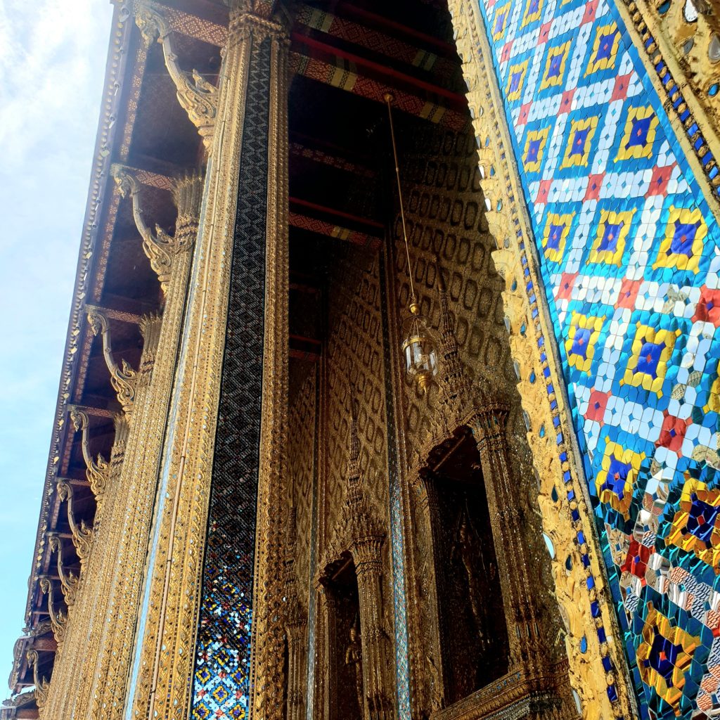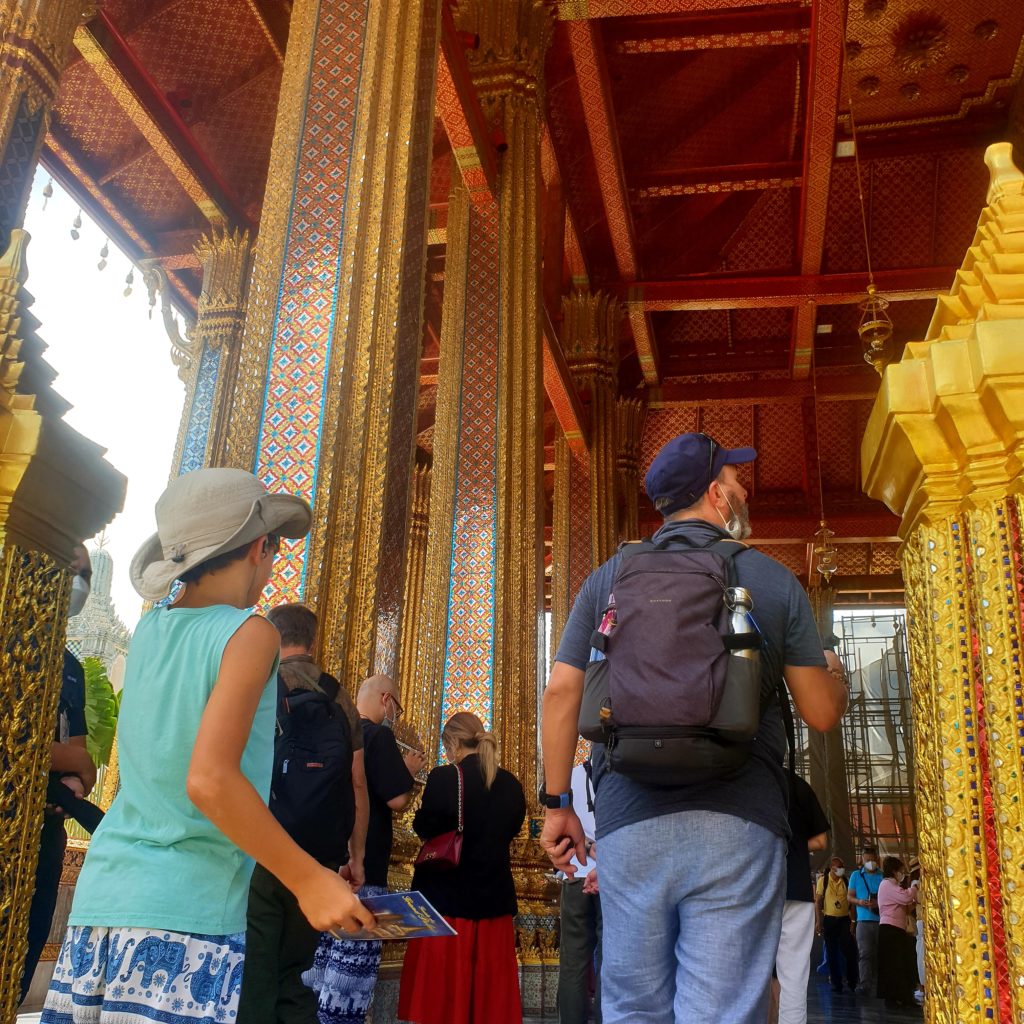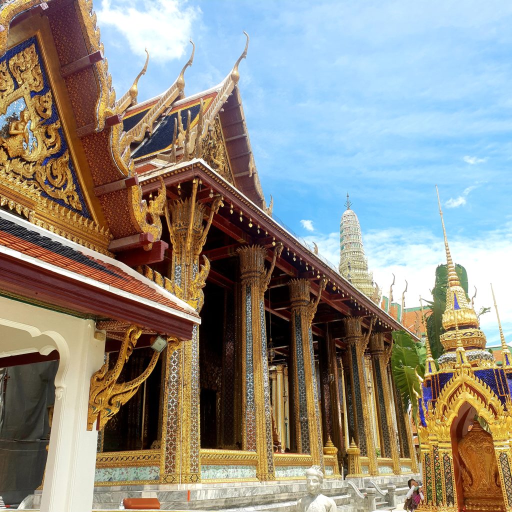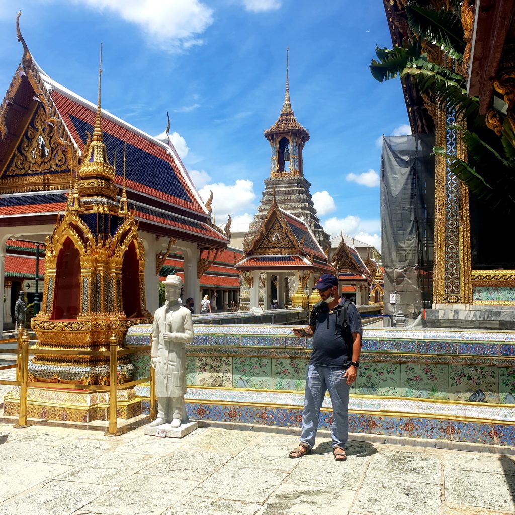 A l’intérieur du palais, on trouve un vaste complexe religieux avec le Wat Phra Kaeo, appelé le temple du Bouddha d’Emeraude. En permanence parfaitement entretenu et rénové, ça change de tout ce qu’on a vu pour l’instant dans les précédents pays… c’est beau, c’est propre, ouahhh !
