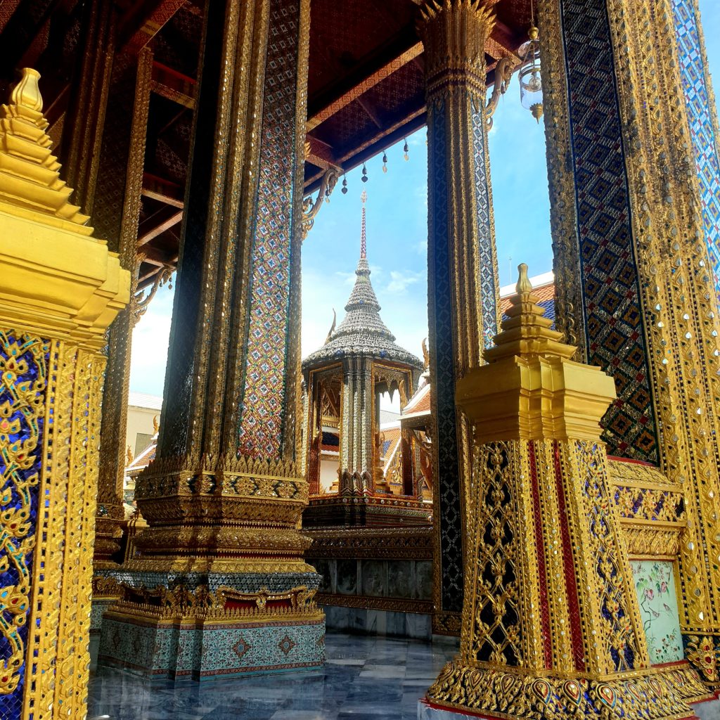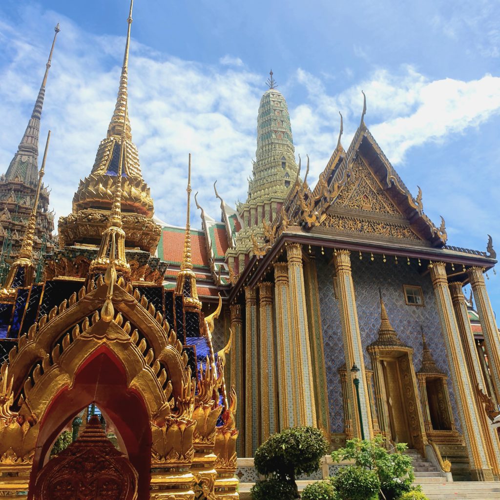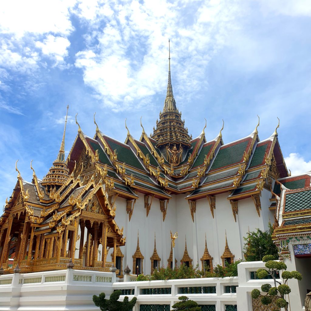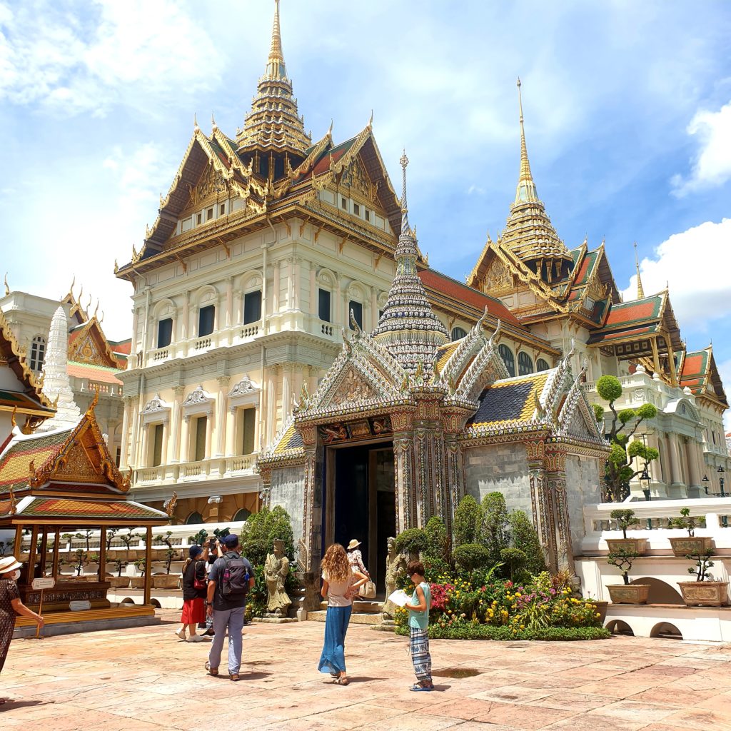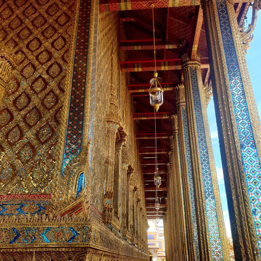 A l’intérieur du palais, on trouve un vaste complexe religieux avec le Wat Phra Kaeo, appelé le temple du Bouddha d’Emeraude. En permanence parfaitement entretenu et rénové, ça change de tout ce qu’on a vu pour l’instant dans les précédents pays… c’est beau, c’est propre, ouahhh !