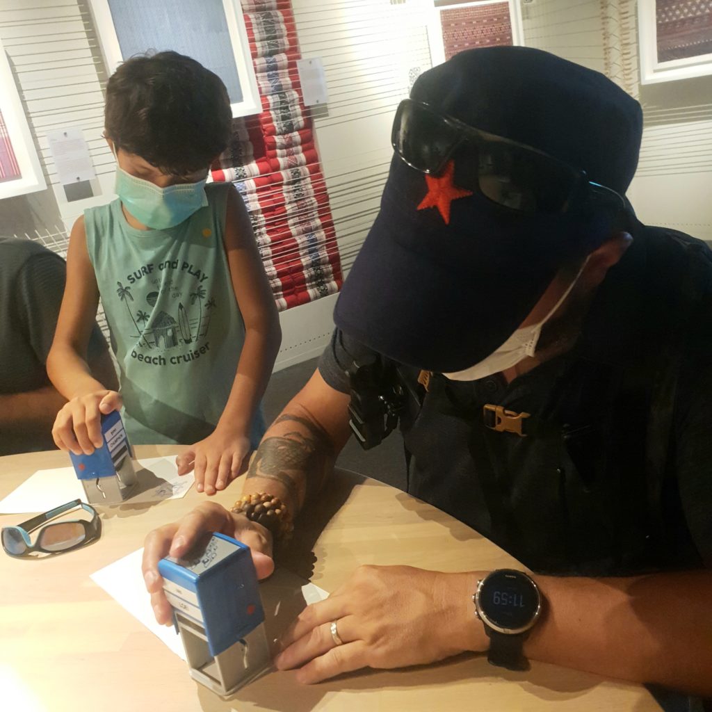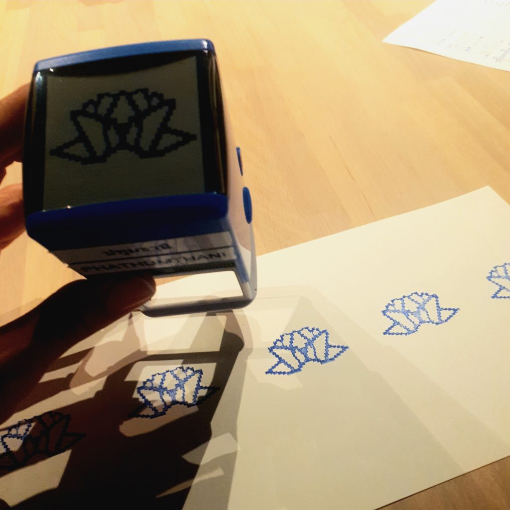 Il y a des tampons avec les dessins traditionnels des batiks. On peut s’amuser à faire nos propres compositions !
