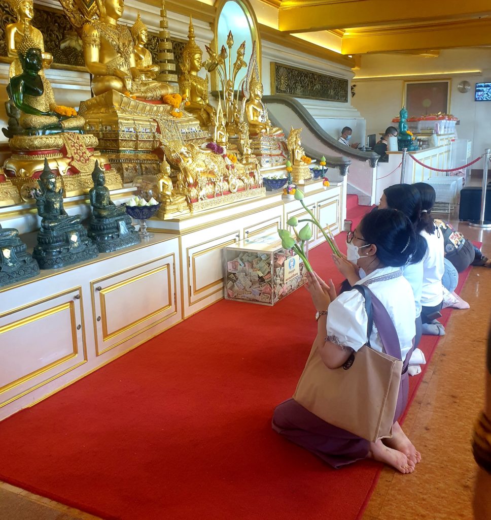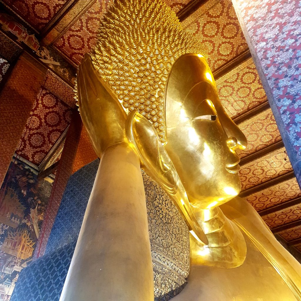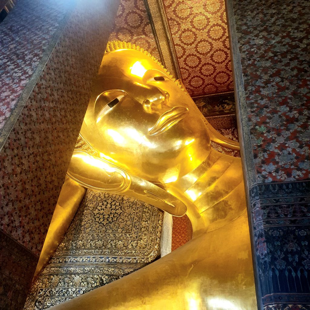 En quittant le Palais royal, on est à quelques minutes à pied du Wat Pho, un des plus beaux ensembles de temples qui abritent notamment le célèbre Bouddha couché de 45m de long !