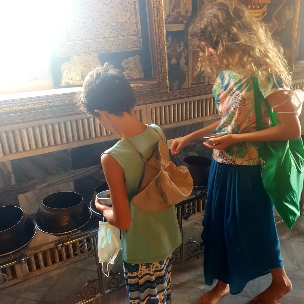 Le Wat Pho, c’est aussi une célèbre école de massage thaï. On va faire découvrir cette autre particularité aux enfants.