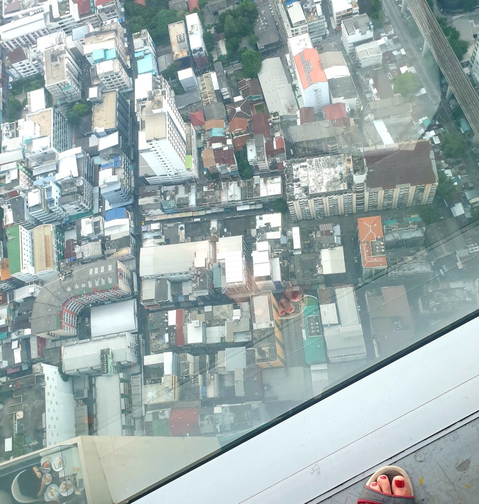 On monte dans un ascenseur en verre (argh !), on boit un cocktail collés aux parois (re argh) et on monte sur le rooftop tournant voir le soleil se coucher ! C’est magnifique, et franchement, ça fait moins peur que la tour de Shanghai (632 m quand même…là, je m’étais faite pipi dessus !!)