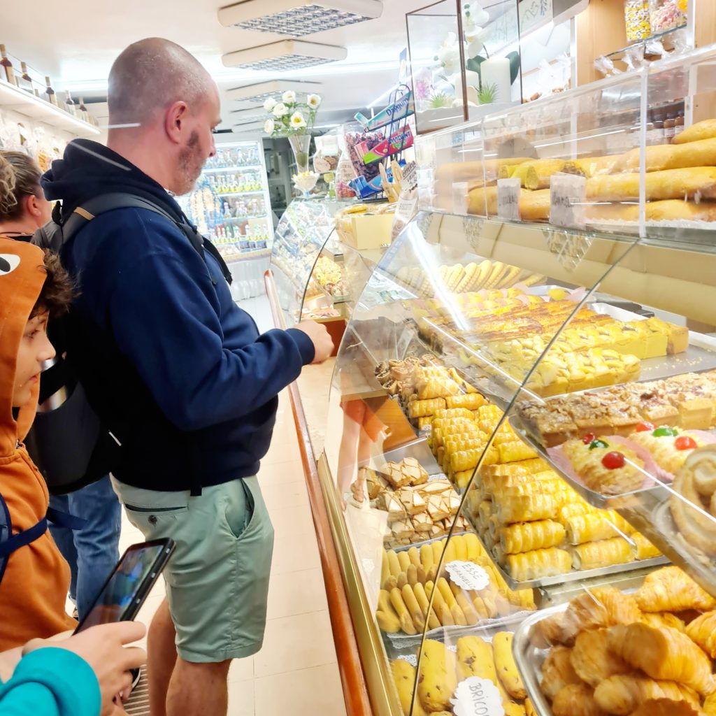 Nous pique-niquons sur un banc…sous la pluie et terminons notre visite par un passage dans une bonne pâtisserie qui fabrique les spécialités de l’île : des biscuits, des bussolai, en forme d’anneau ou de « S », aromatisés à la vanille, au rhum ou au citron.
