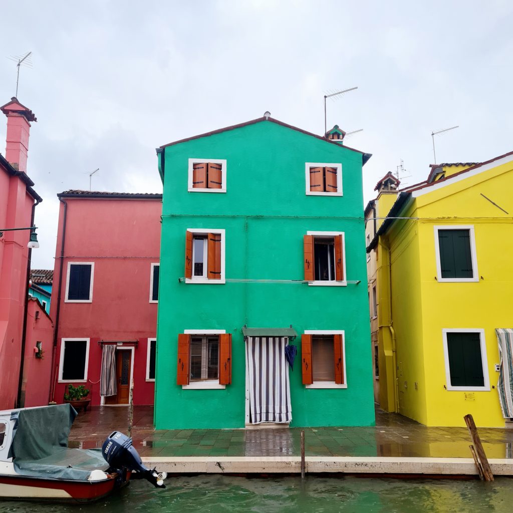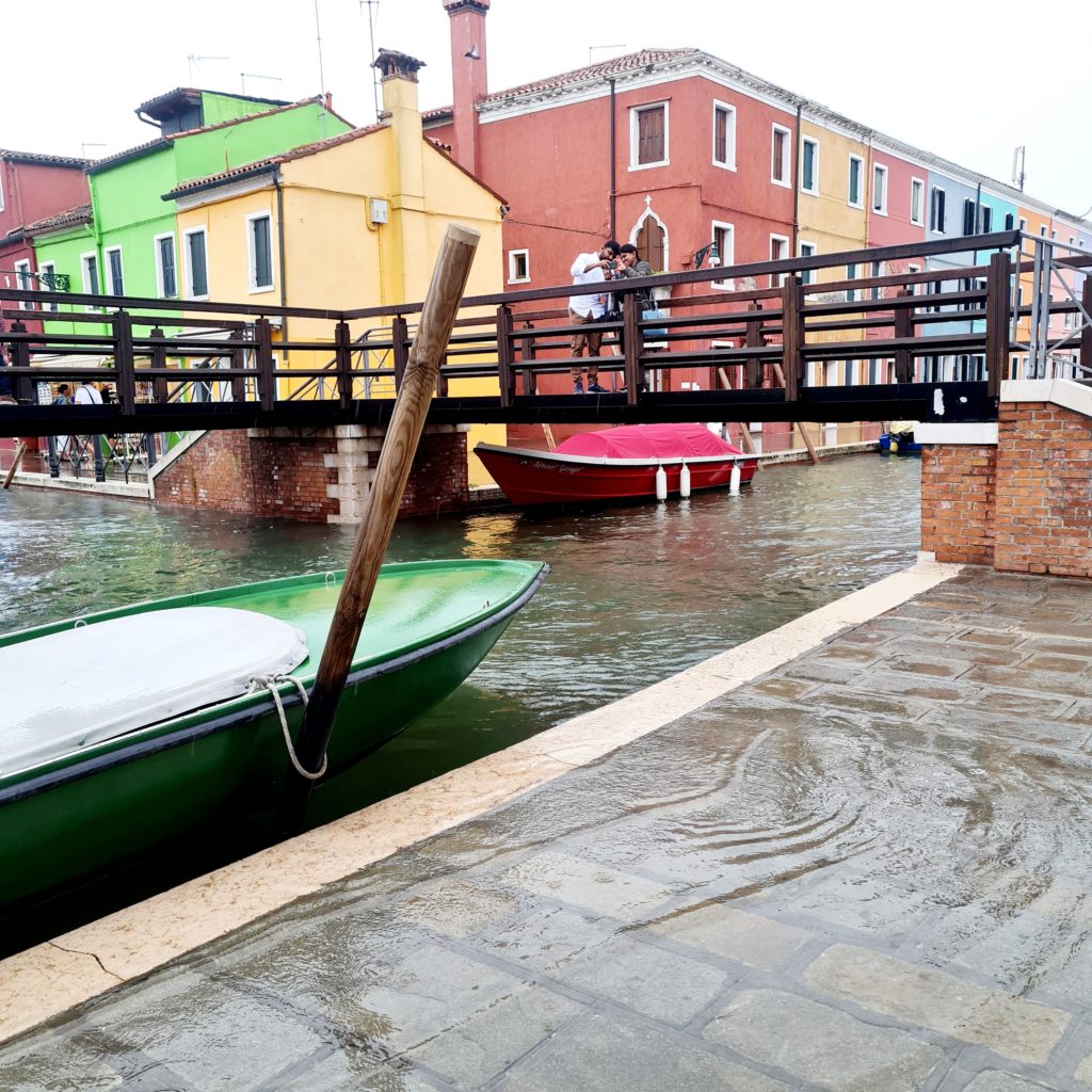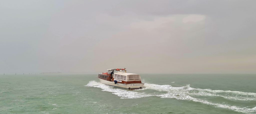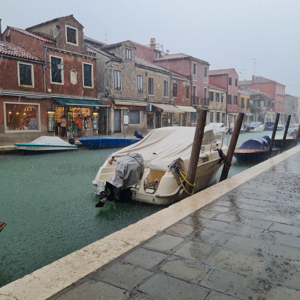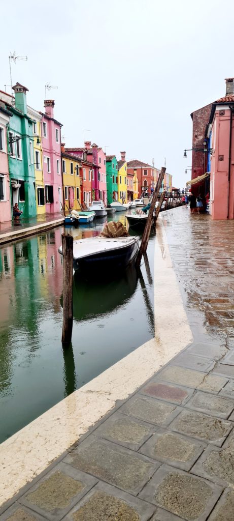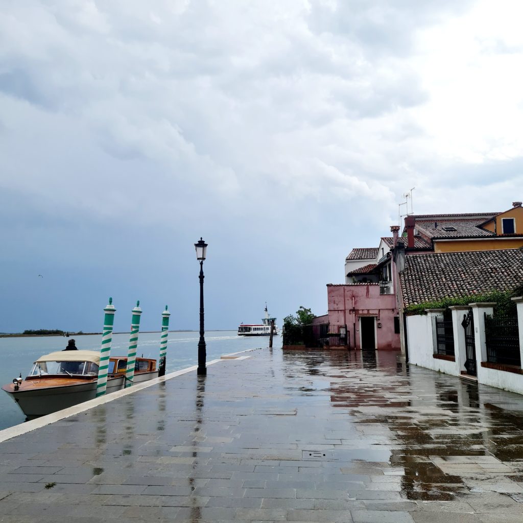 On met un temps fou à rejoindre le point de départ vers les îles puis, 40 min jusqu’à Burano. En même temps, comme il ne fait pas beau, on est aussi bien à l’abri dans le bateau !