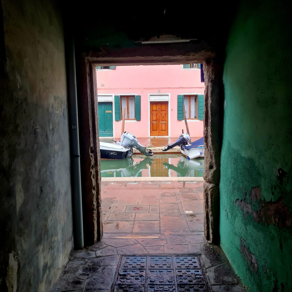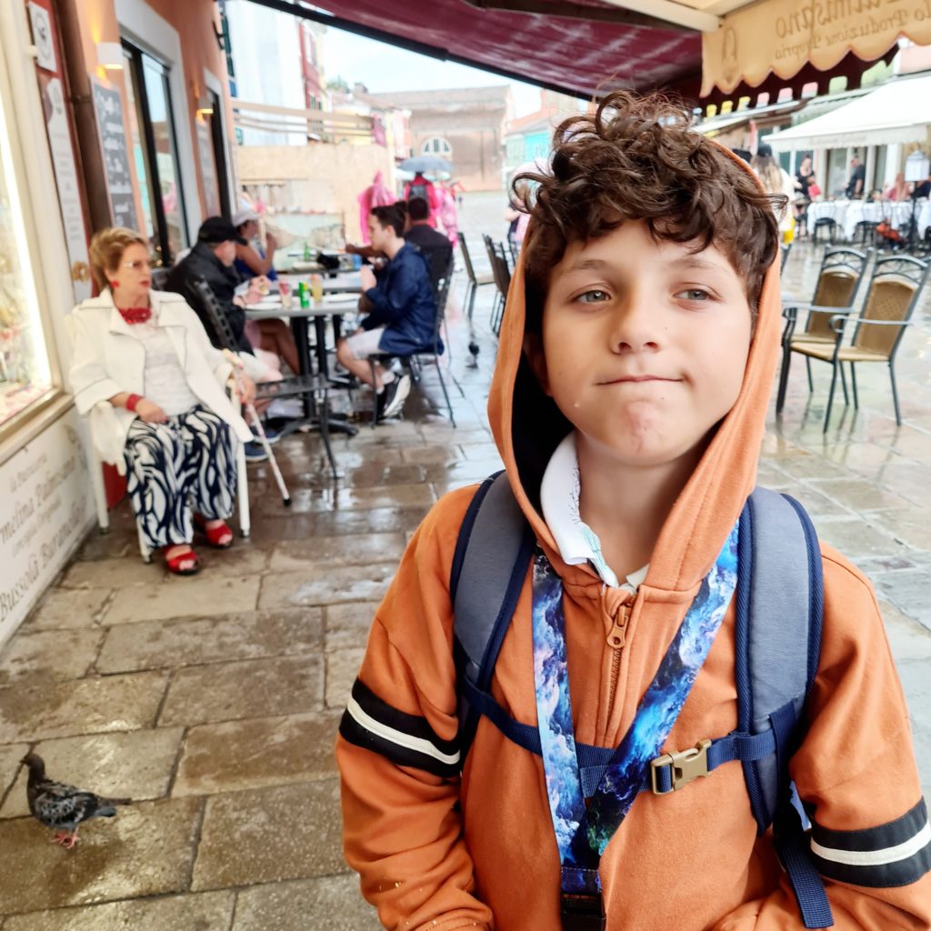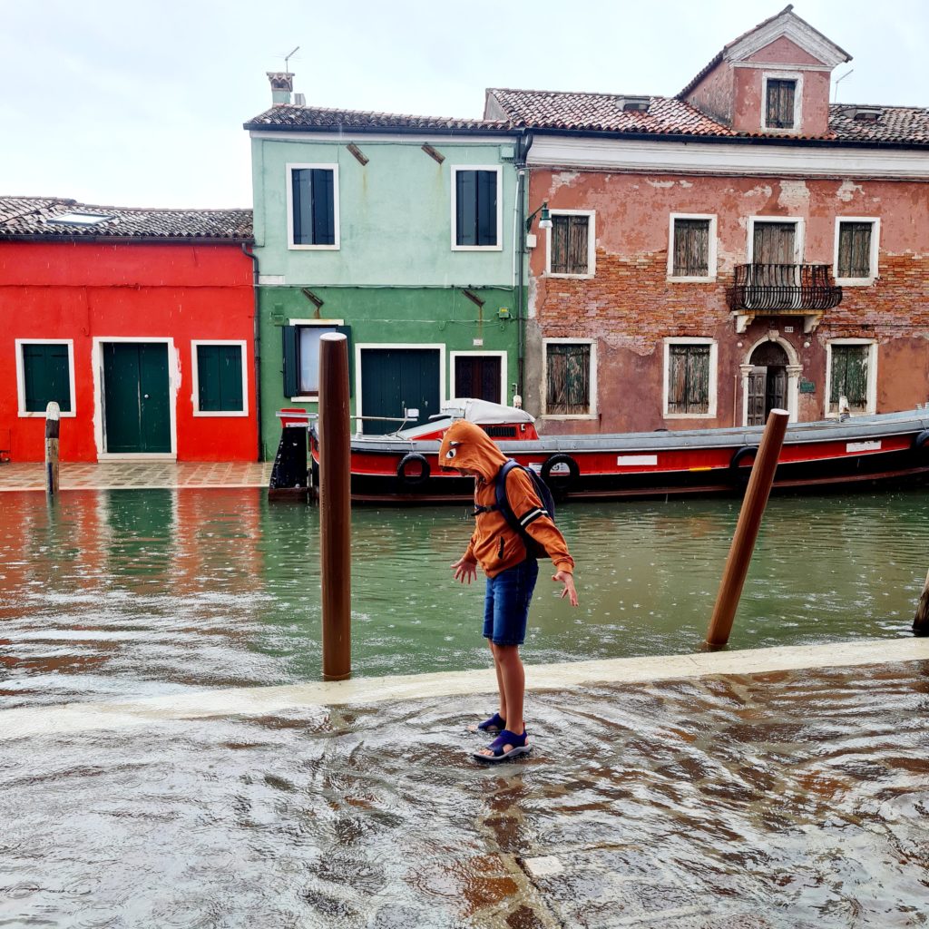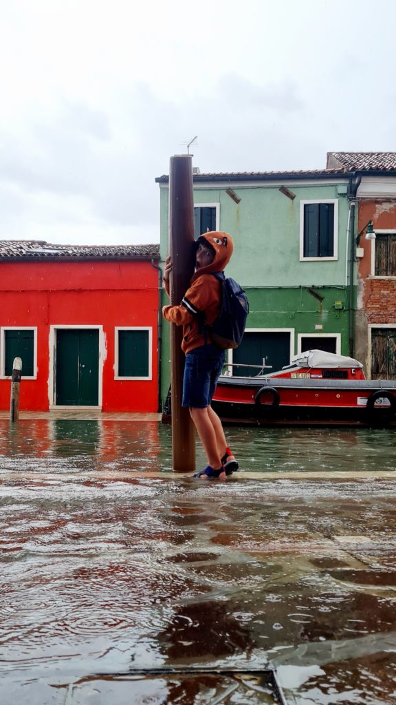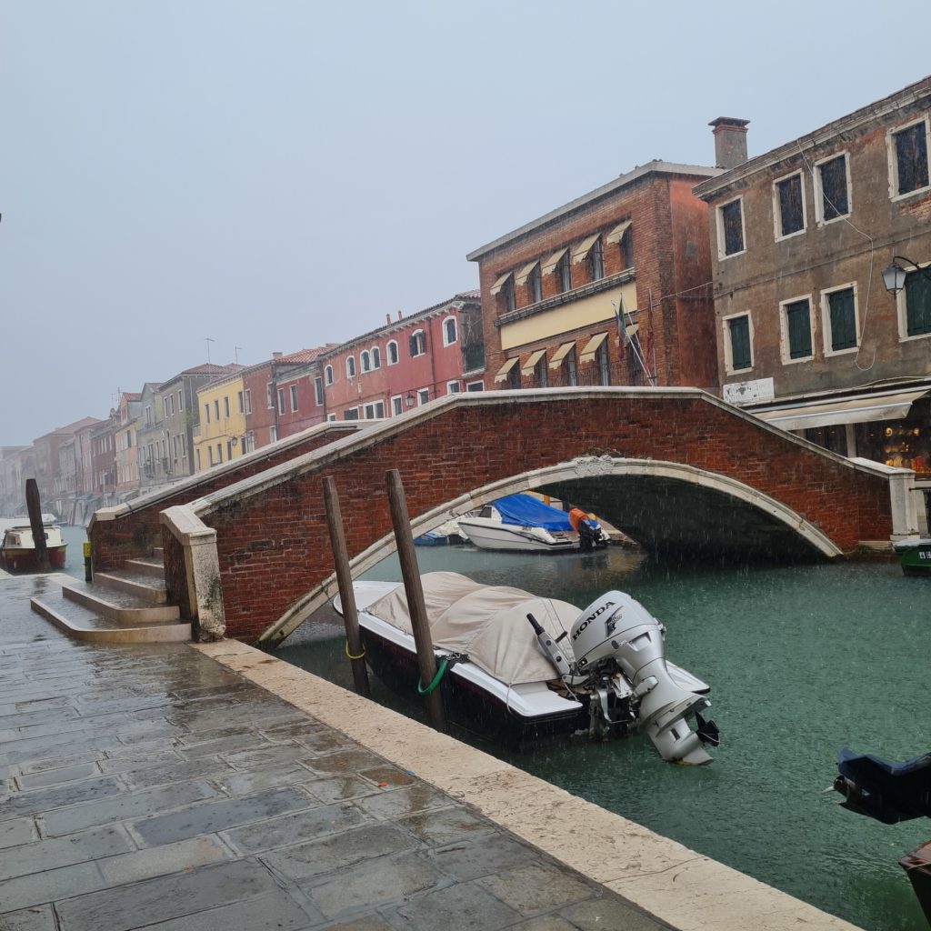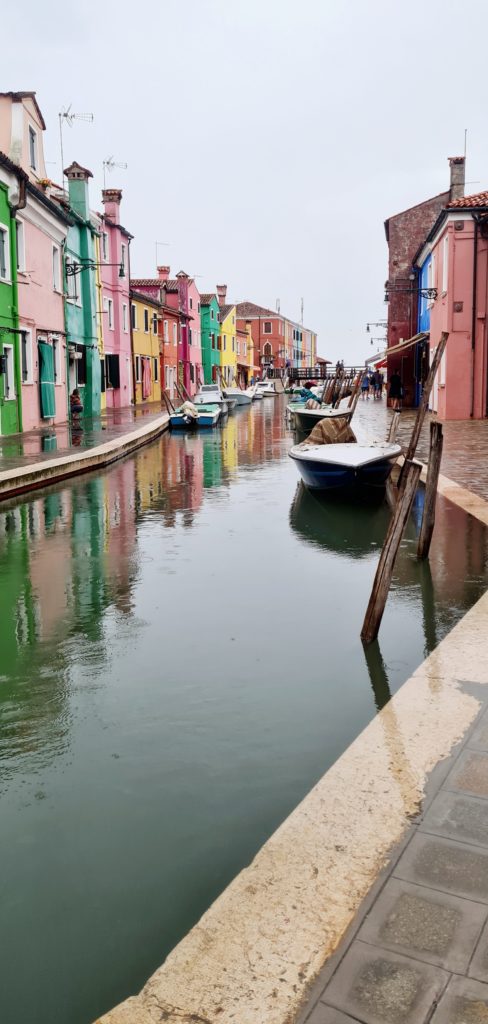 On met un temps fou à rejoindre le point de départ vers les îles puis, 40 min jusqu’à Burano. En même temps, comme il ne fait pas beau, on est aussi bien à l’abri dans le bateau !