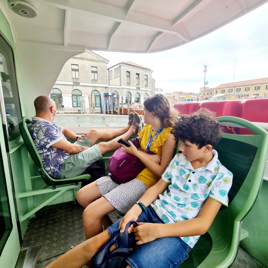 Les enfants se choisissent un sujet en verre comme souvenir et nous repartons prendre le bateau pour rentrer à l’appartement nous poser un peu.