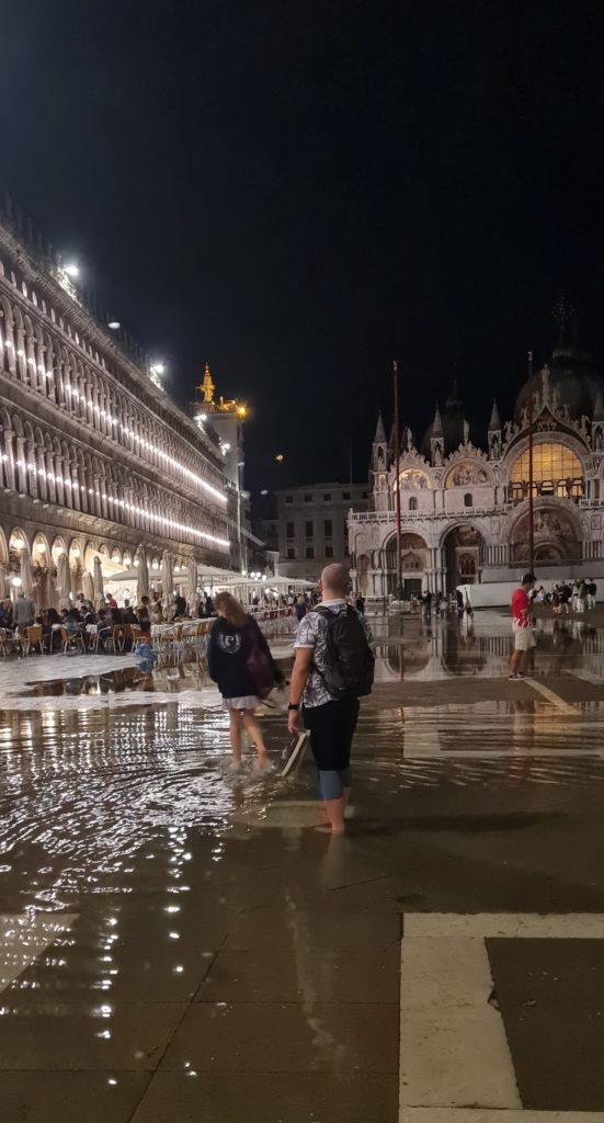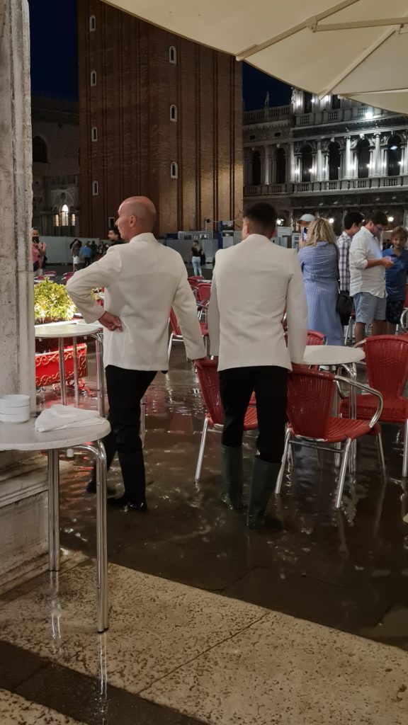 Au retour, nous passons par la place St Marc voir où en est l’acqua alta : ça n’a pas bougé…il n’y aura pas plus d’eau qu’hier soir.