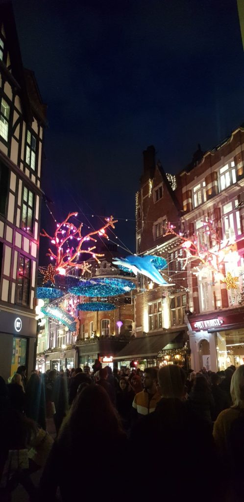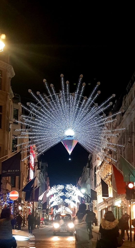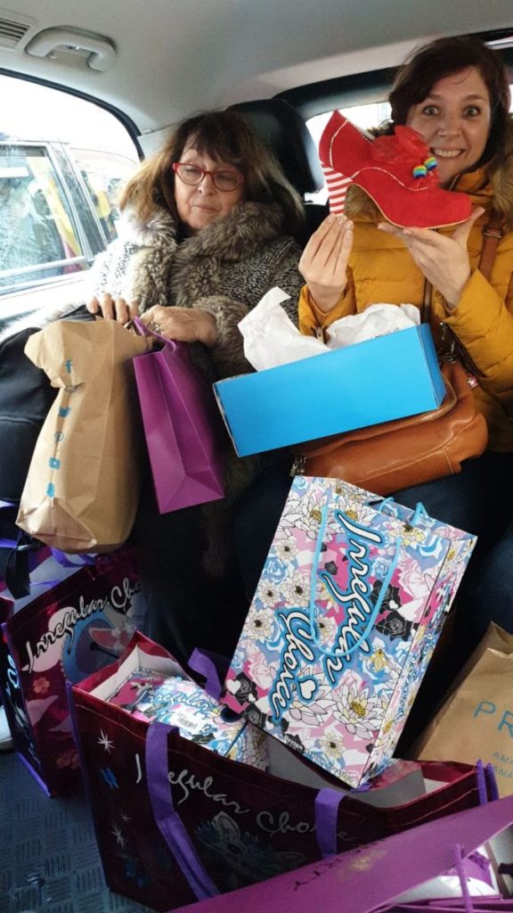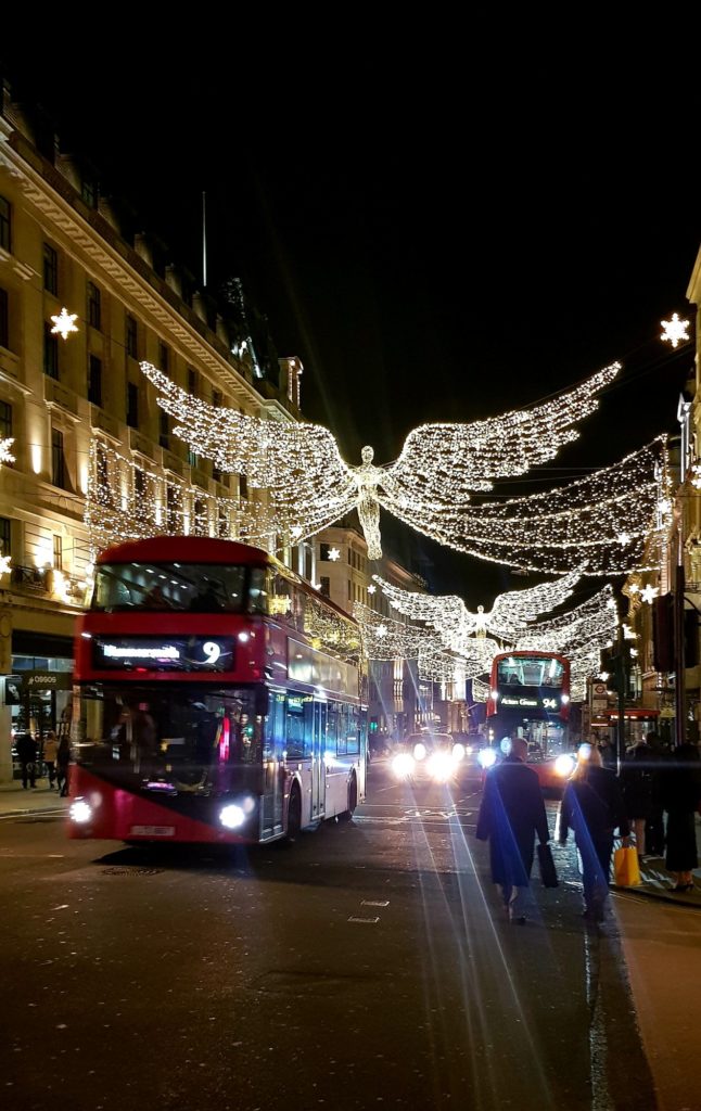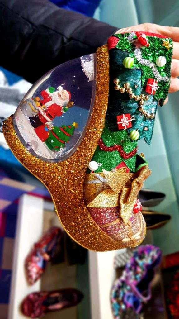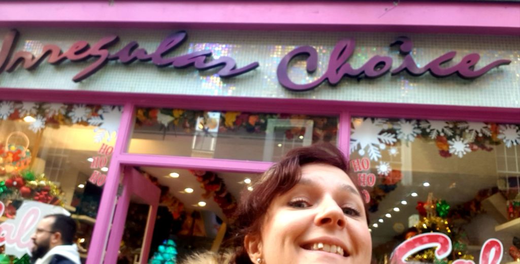 Un cab nous ramène près d’Oxford Street où nous voulions faire nos dernières emplettes. On repasse « par hasard » près de la boutique Liberty où Éric m’offre mon cadeau de Noël puis de Irregular Choice !! Hiiiiiiii, j’essaie des tas de paires…1 heure après, on ressort avec quelques achats !!