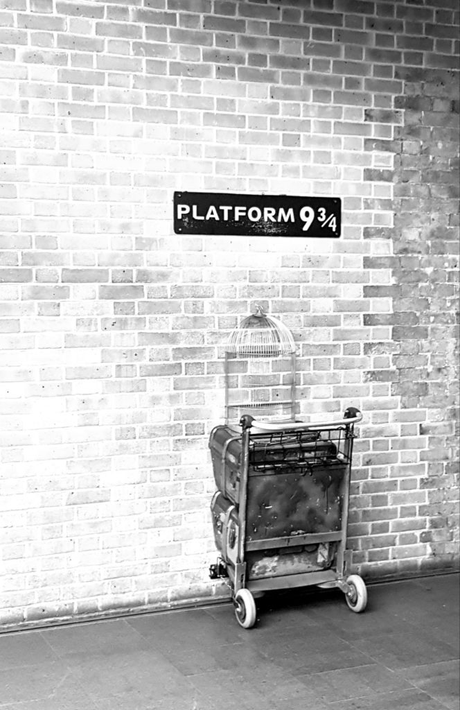 Sur place, il y a la queue pour se prendre en photo devant le charriot à moitié enfoncé dans le mur ! Je propose de me mettre dans la file, le temps qu’ils aillent flâner et rêver dans la boutique Harry Potter juste à côté. Au bout de 45 min, j’y suis encore…quand tout le monde sort de la boutique, il reste encore de l’attente…nous quittons la gare !