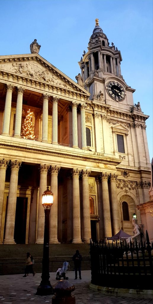 Nous déjeunons à l’hôtel. Nous décidons de rester faire faire une sieste aux enfants pour qu’ils soient en forme ce soir. Au bout de presque 1 heure où on ne fait pas de bruit dans une des chambres (communicante) pendant qu’ils sont dans l’autre, nous nous rendons compte qu’ils ne dorment pas du tout ! Nous nous faisons beaux et sortons, direction la Cathédrale St Paul. Arrivés devant les marches, on nous annonce que l’église n’est plus accessible pour les chorales de Noël car il y a trop de monde…il paraît que certains attendent depuis midi ! Il est 16h00, on nous propose d’attendre pour la messe de minuit qui est à 23h30…heuuu, faut pas exagérer quand même !