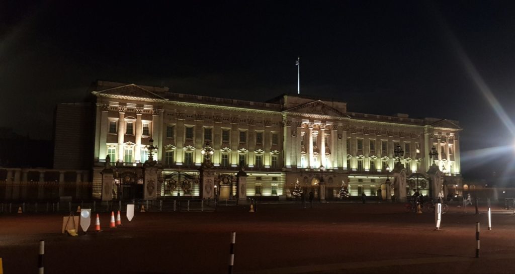 Nous replongeons dans la nuit et partons à pied jusqu’à un pub qu’on nous a conseillé. Nous longeons Buckingham, St James Park, nous admirons les illuminations et les palaces.