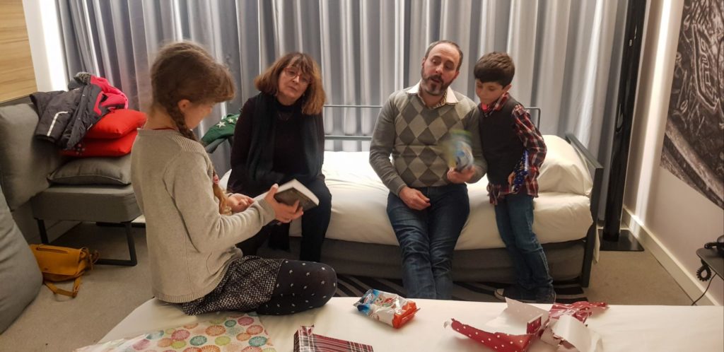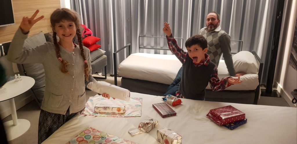 Nous rentrons à l’hôtel, les enfants ont la surprise de voir que le Père Noël a déposé une partie des cadeaux dans une des