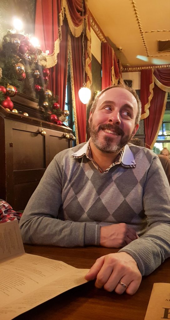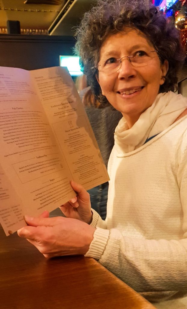 Nous passons près de chez la Reine…et arrivons à The Albert, un pub traditionnel. Des rideaux rouges, des boiseries, des portraits de la royauté, des lumières tamisées, le lieu est chaleureux et accueillant.