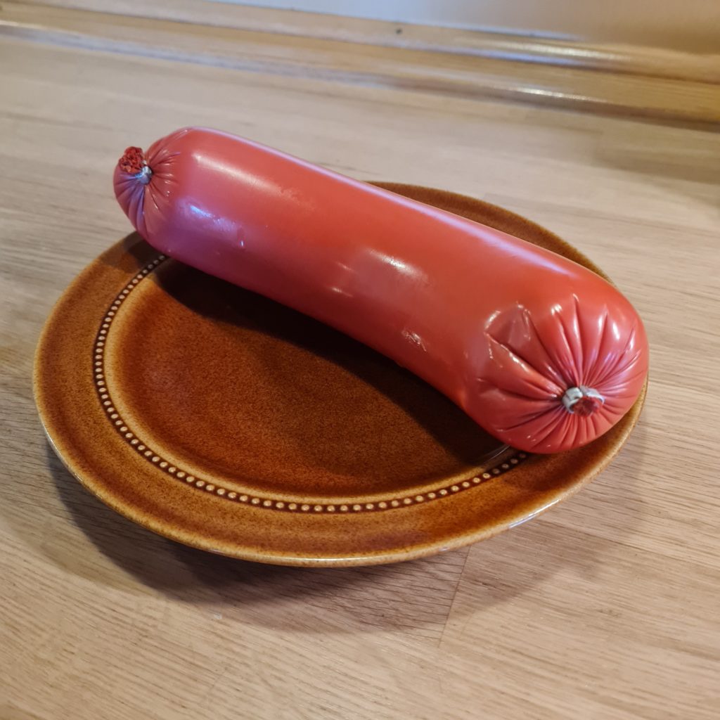 Alors, le Falukorv, c’est cette saucisse rouge suédoise qui nous a interpellée au supermarché. Cela ressemble à du cervelas, mais une fois grillé, ça a le goût des knackis !