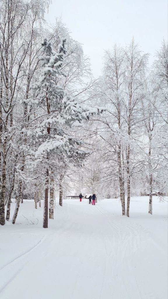 Le village où nous arrivons est adorable avec toute cette neige. C’est silencieux…si les fenêtres n’étaient pas éclairées, on pourrait croire qu’il n’y a personne. Voilà peut-être pourquoi ils laissent leurs petites lampes allumées jours et nuits ! Un peu de vie et de lumière dans ce long hiver blanc.