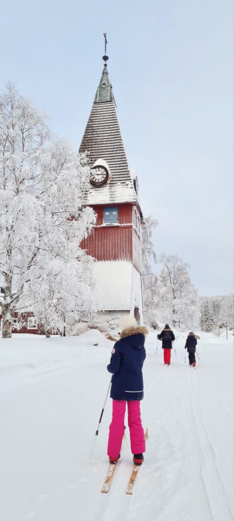 Sa maison, adorable, est celle de sa grand-mère. On dirait la maison du Père Noël, sous la neige, au milieu des sapins. Des guirlandes de lumières partout, c’est adorable ! Nous en profitons pour lui parler de cette habitude de lampes devant les fenêtres, que nous n’avons pas chez nous. Il est très surpris que nous ne fassions pas la même chose, ici, c’est culturel.