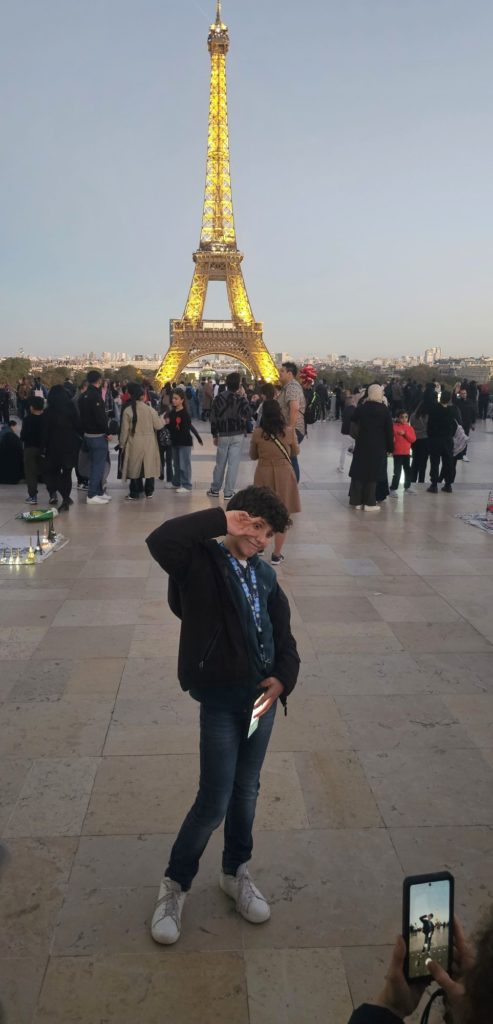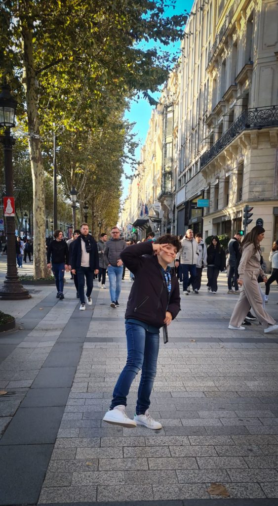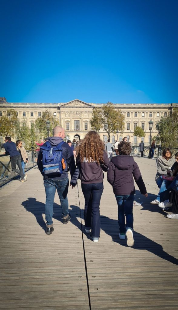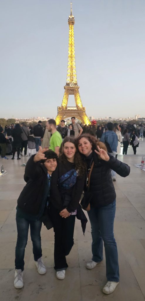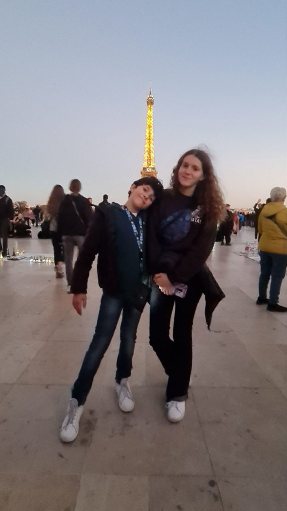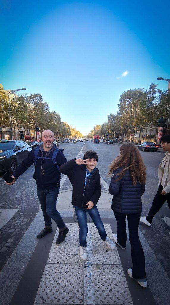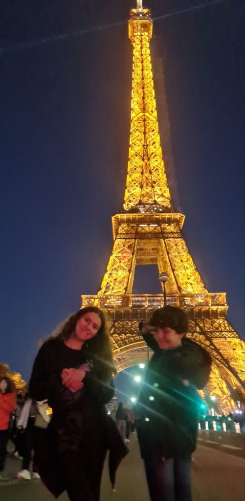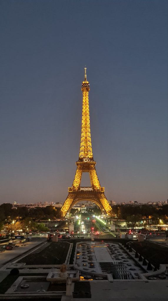 La lumière commence à décliner, il est l’heure d’emmener les enfants là où j’adorais faire la surprise à mes élèves : aller voir le coucher de soleil place du Trocadéro avec la Tour Eiffel illuminée (et avec mes élèves, finir la soirée en embarquant tout en bas dans un bateau-mouche pour une croisière nocturne !) Qu’est ce que j’en ai fait des photos de groupe ici !!! Qu’est-ce qu’ils étaient contents quand on arrivait là. J’ai une pensée pour tous mes collègues qui m’ont suivis dans mes délires de voyages parisiens ces 10 dernières années.