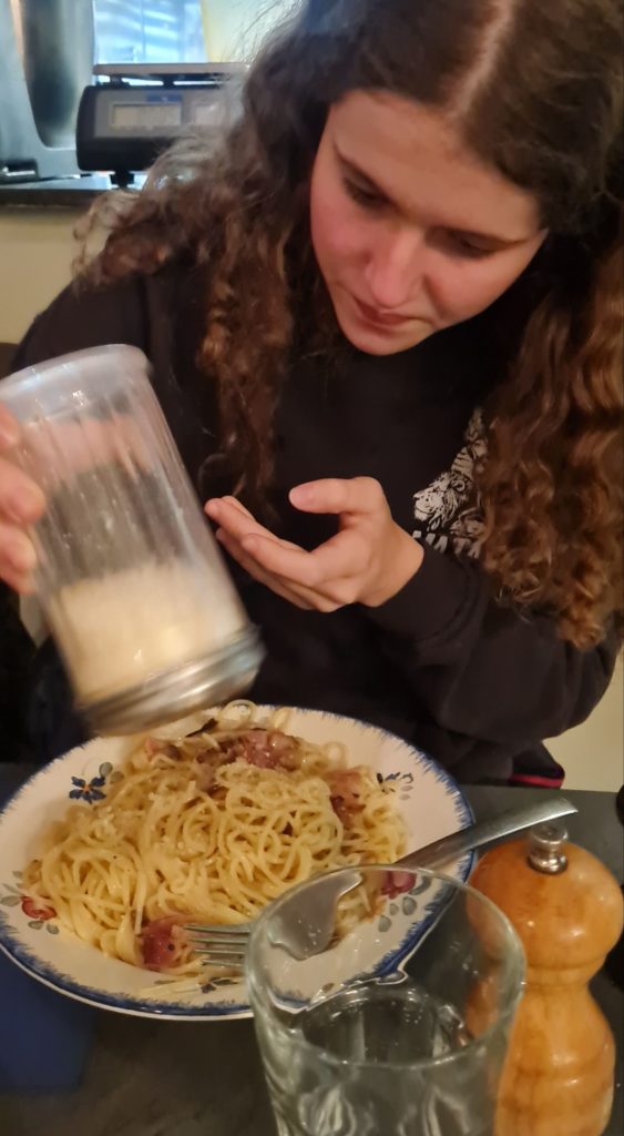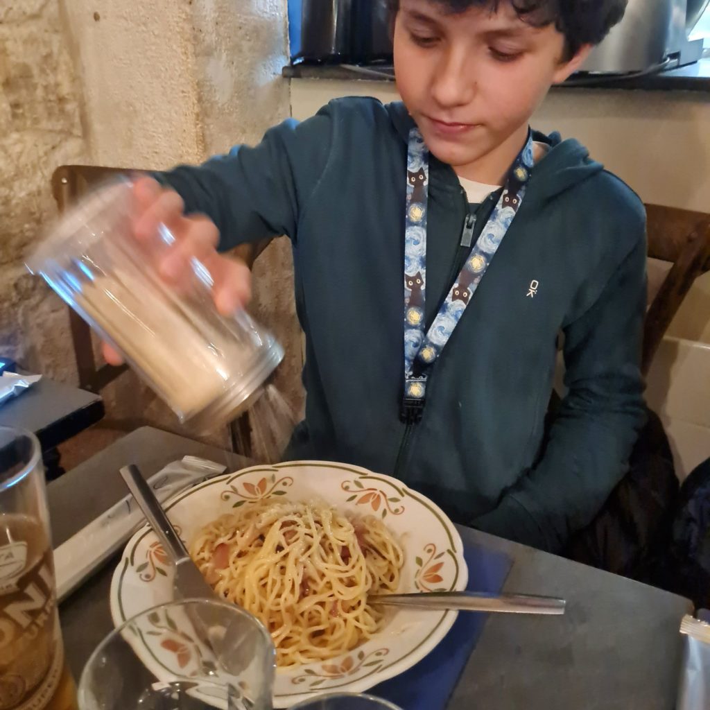 La nuit est tombée, nous rentrons dans le quartier des Buttes Chaumont où nous logeons et allons dans un petit resto italien,  spécialiste en pâtes fraîches faites maison, recommandé par François. Un régal, on s’entraîne pour Pâques !!