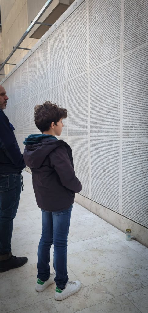 En sortant du musée, nous mangeons dans un resto chinois rue de Rivoli et allons au Mémorial de la Shoah. Oui, je sais, ce n’est pas un lieu très fun, mais j’avais l’habitude d’y emmener mes élèves, et c’est au programme pour Emma cette année. C’est à visiter au moins une fois je pense, pour prendre conscience et se souvenir. Et ça a fonctionné.