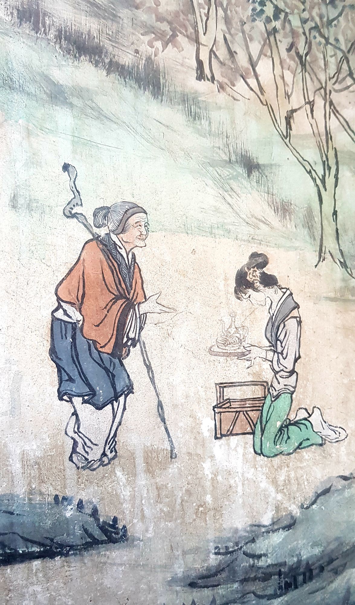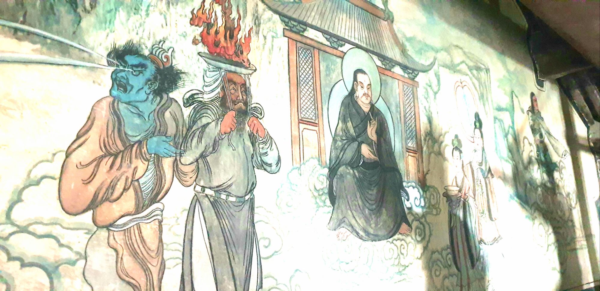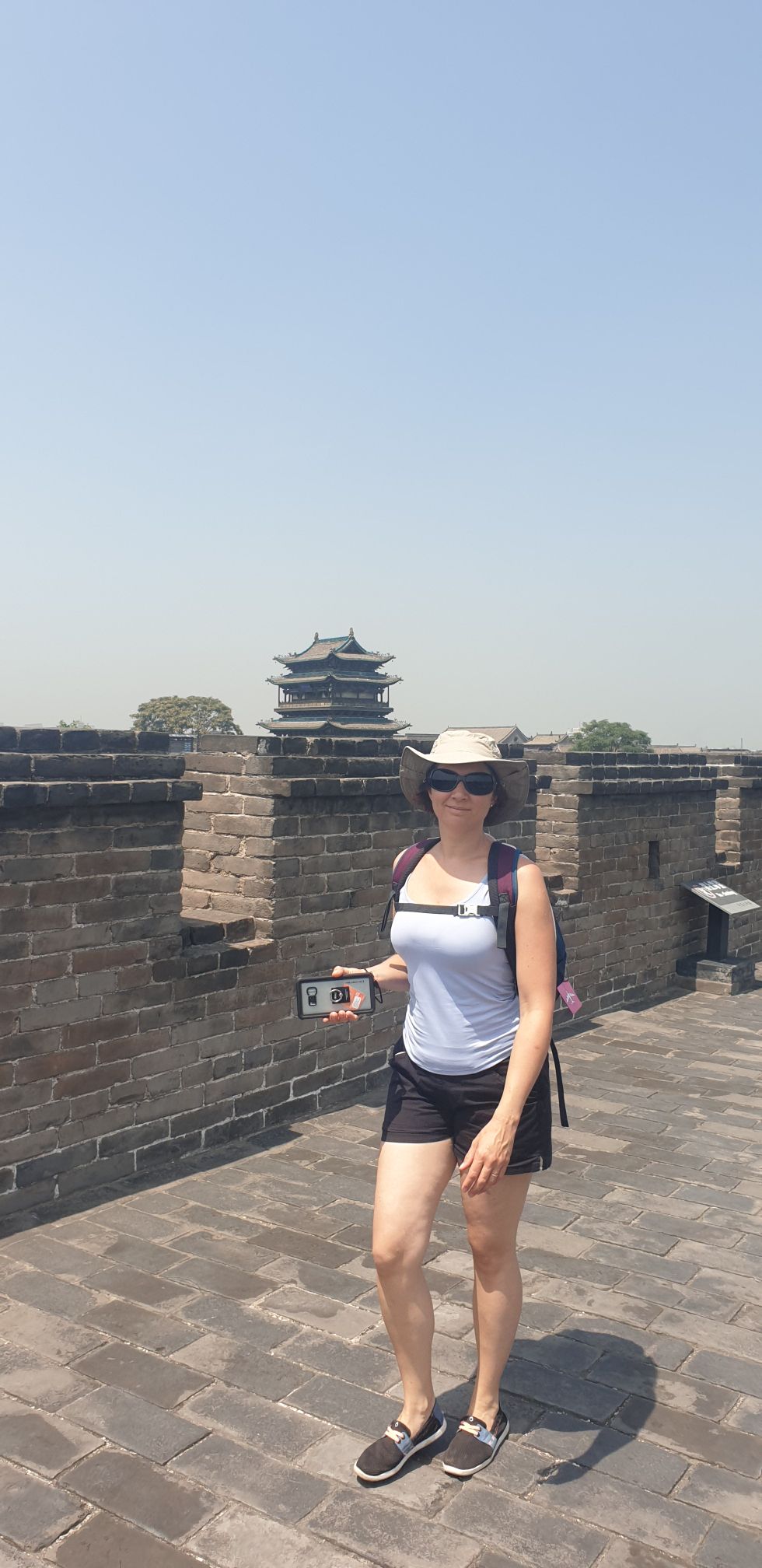 La porte Sud à laquelle nous arrivons enfin et superbe ! On y retrouve tous les éléments de l’architecture des toits en pagode : tuiles vernissées, poutres peintes et sculptées, faîtières ouvragées, sculptures de dragons qui protègent le bâtiment, etc…