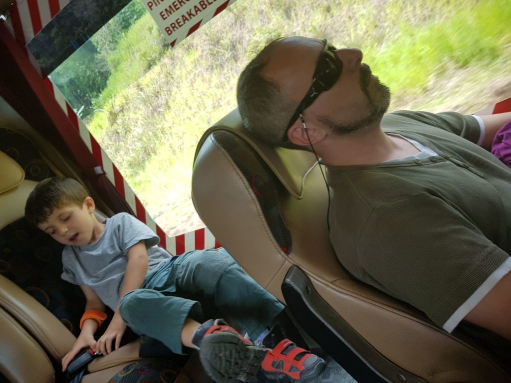 – 3 : que nous aimons le risque : lors d’une pause, nous avons acheté à emporter un plat local à base de riz que nous avons mangé dans le bus. Imaginez donc Sacha, mangeant tout seul dans les conditions citées précédemment !!! Et bien, il n’y a pas eu un seul grain de riz par terre; il a besoin d’aventure c’te enfant pour faire attention !