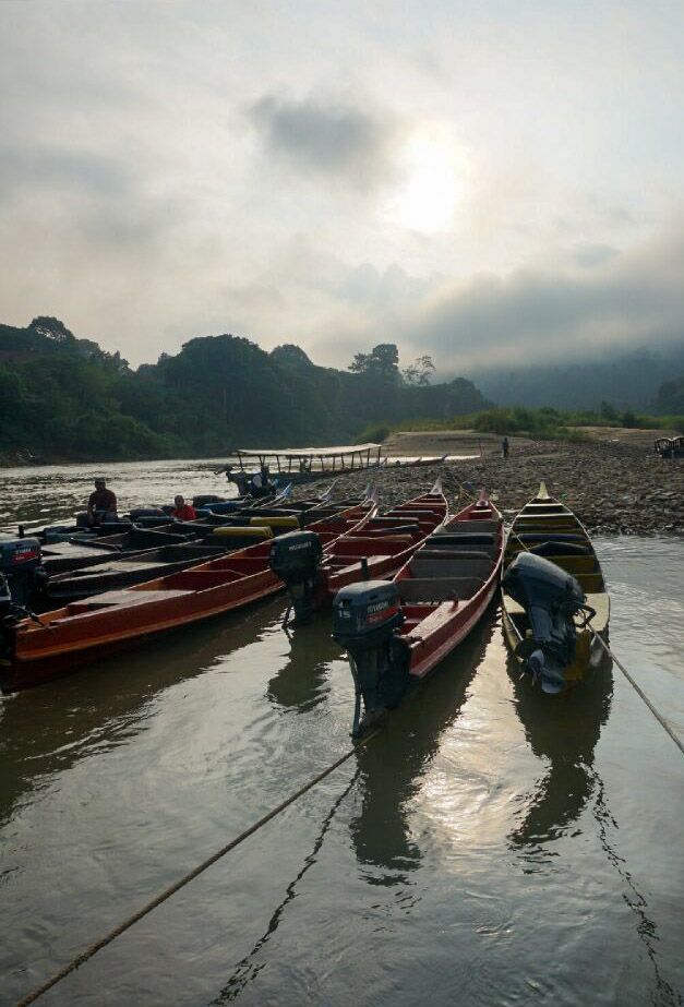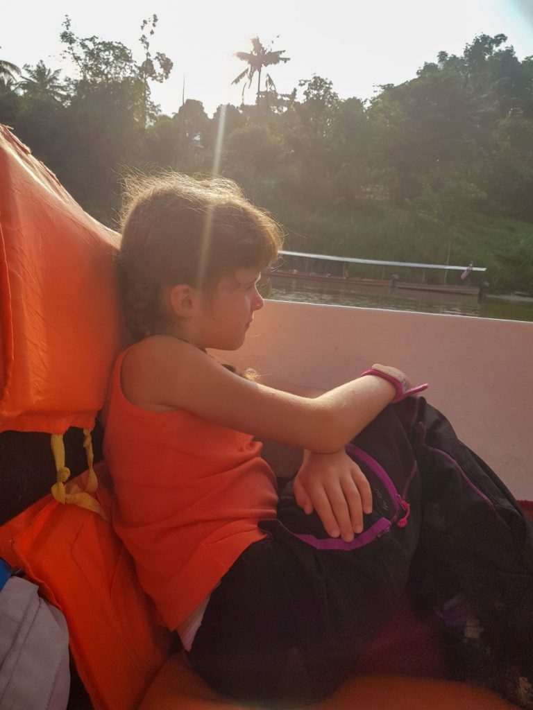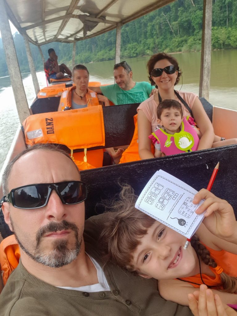 Départ ce matin à nouveau en pirogue puis en bus (qui nous secoue énormément-c’est un euphémisme- ce qui fait beaucoup rire les enfants !!!) pour les Cameron Highlands, une région montagneuse où les anglais avaient installé des plantations de thé.