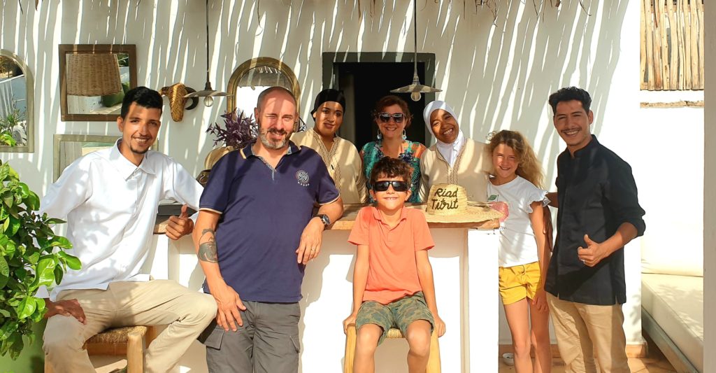 Ce matin, nous faisons la connaissance au petit déjeuner d’un couple de canadiens qui a passé la nuit au Riad. Nous échangeons quelques mots, ils ont l’air très sympas. Comme chaque jour, Aïcha nous a préparé de nouvelles spécialités pour le petit déjeuner ! Aujourd’hui, gâteaux à l’orange et beignets, miam !