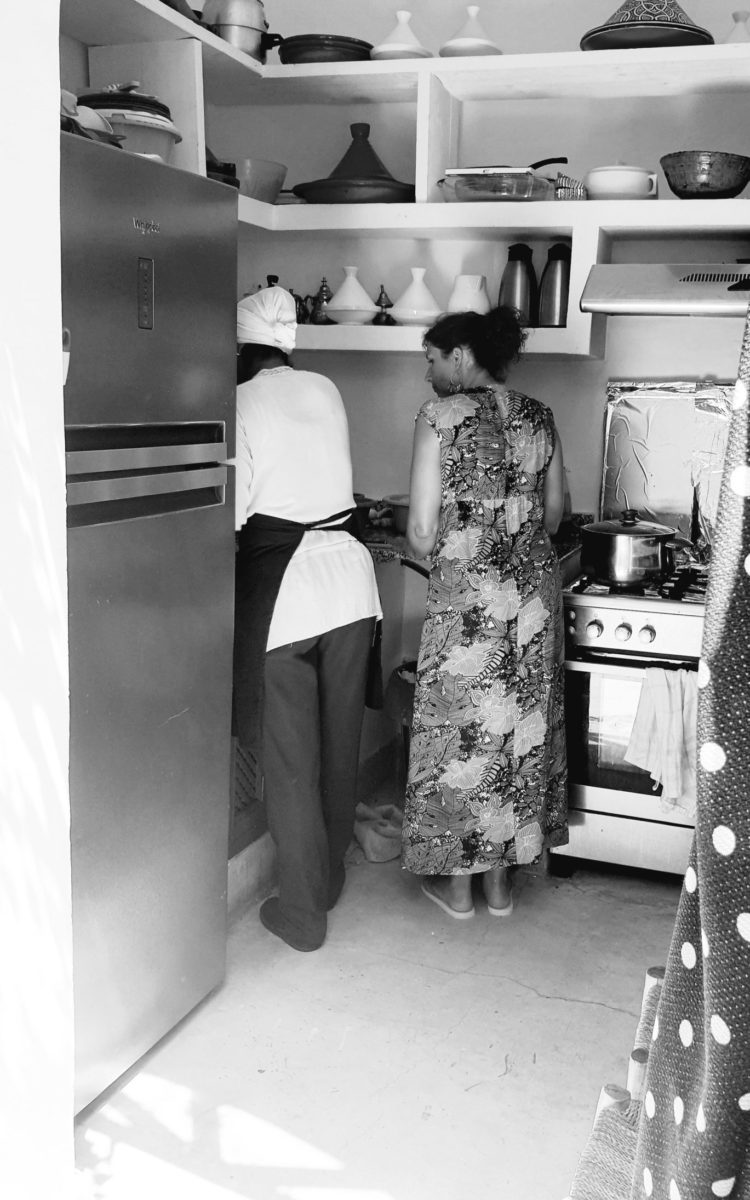 Nous nous installons dans la cuisine du Riad et cuisinons pendant 2h30.